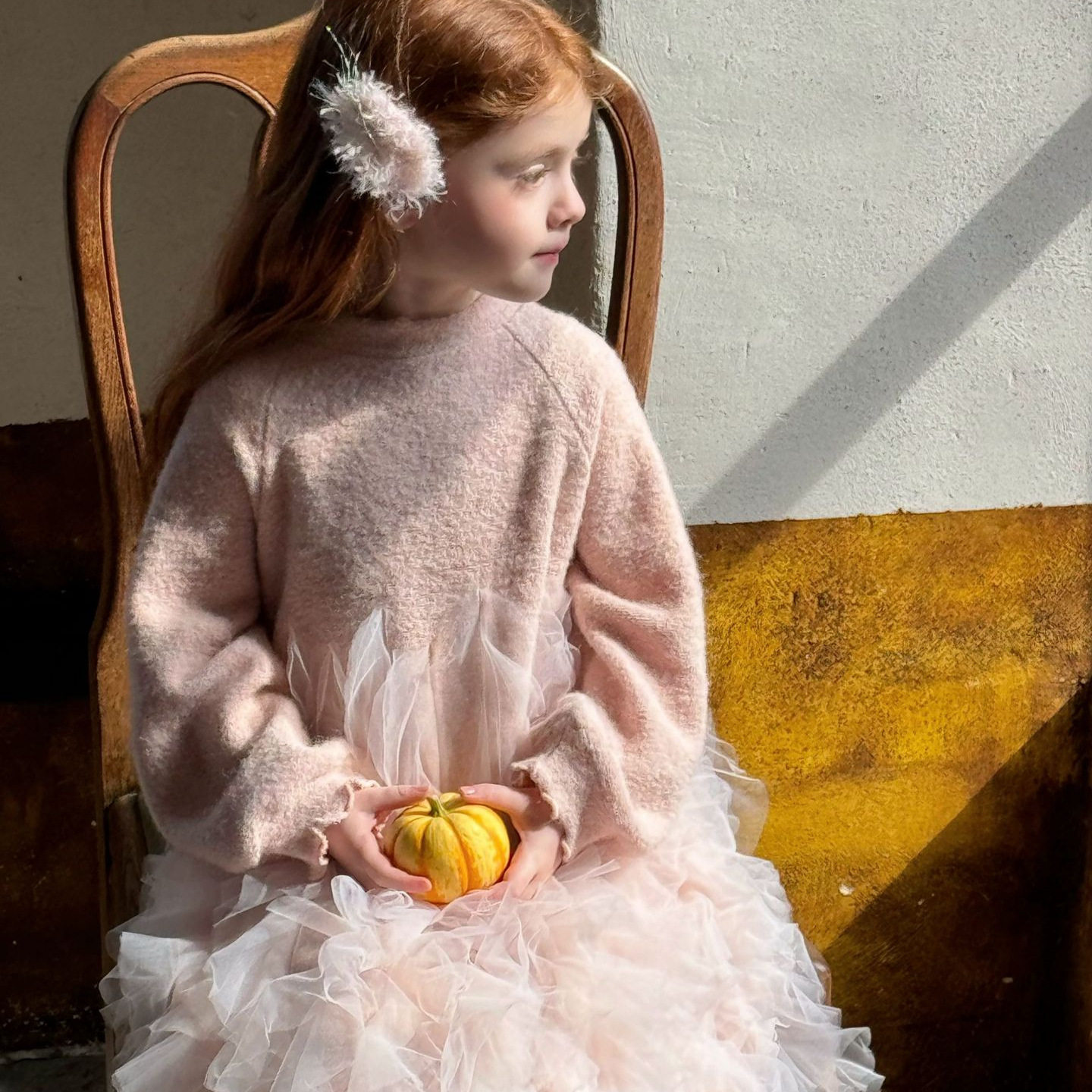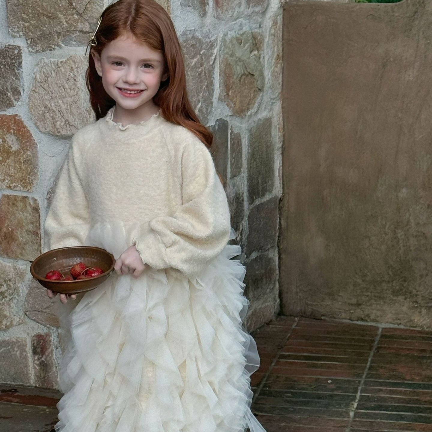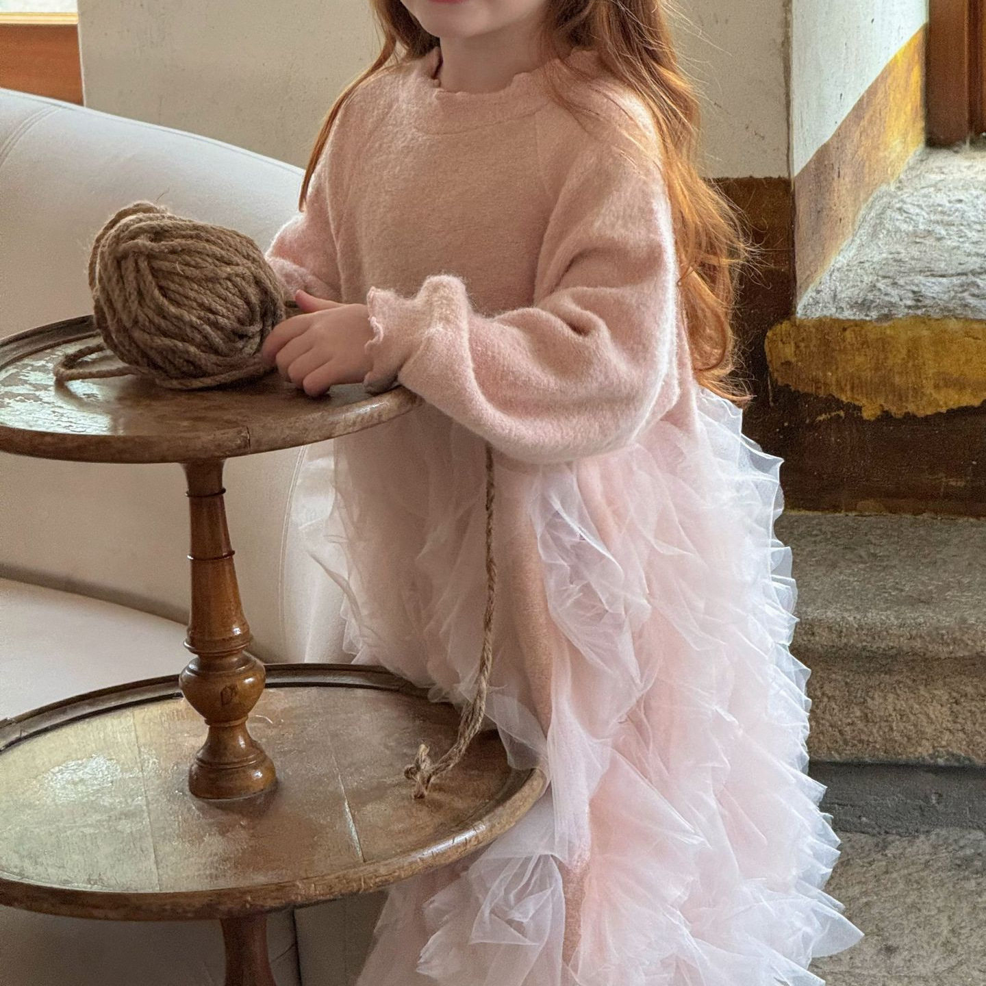 2025冬装新款韩版洋气休闲羊毛针织纱裙儿童木耳边宽松女童连衣裙