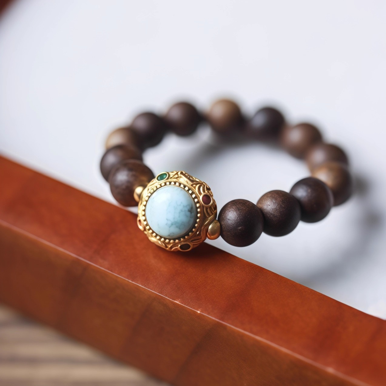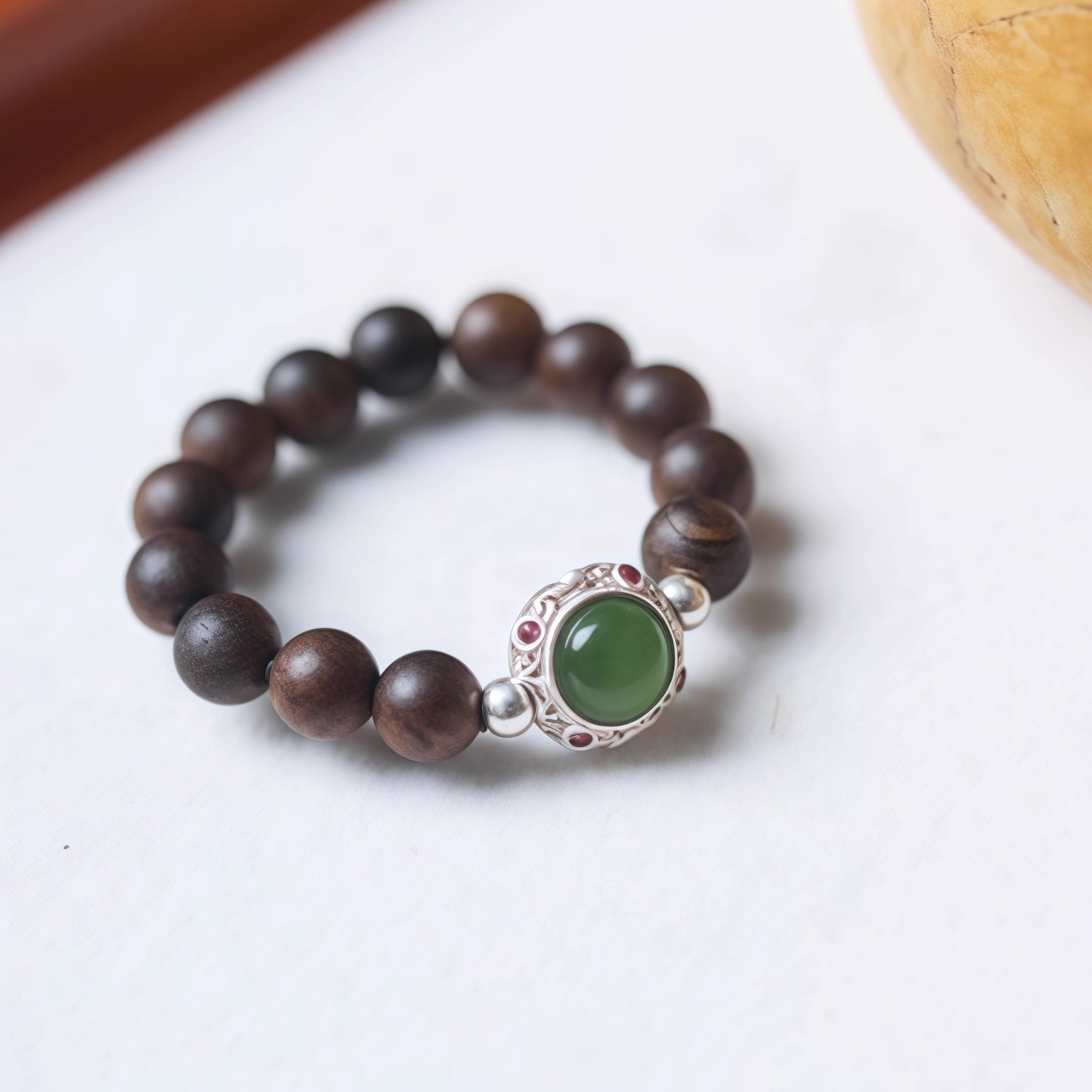 原创手作天然奇楠沉香小米珠戒指翡翠葫芦高级手链财运圆珠指环绿