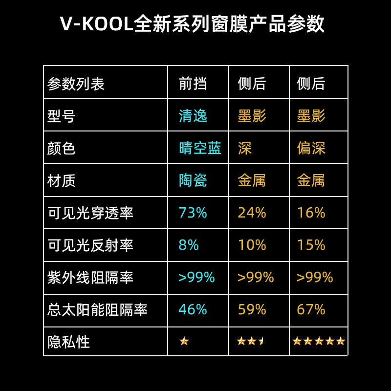 VKOOL威固清逸+墨影汽车贴膜隔热膜陶瓷太阳膜贴膜汽车窗膜全车膜