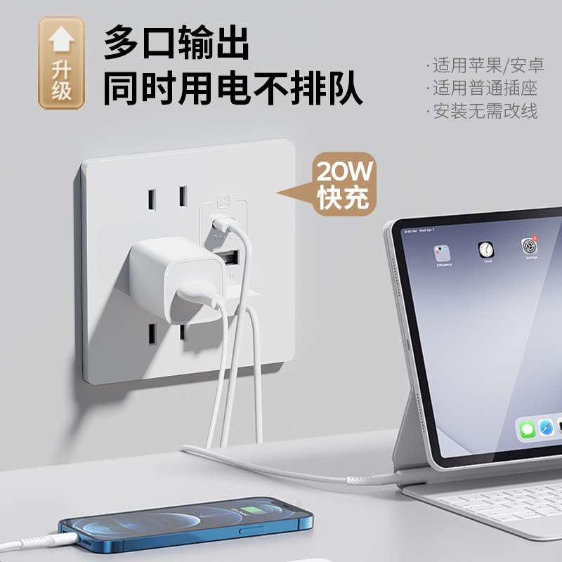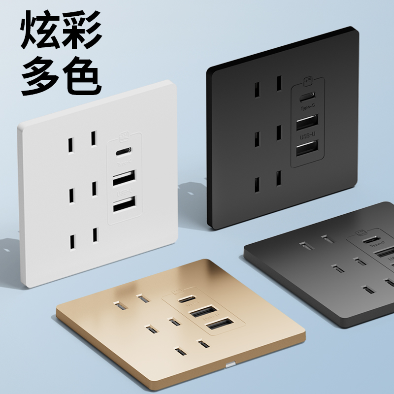 86型六孔插座带20W快充USB床头4孔插座面板带usb c口家用5孔6五孔