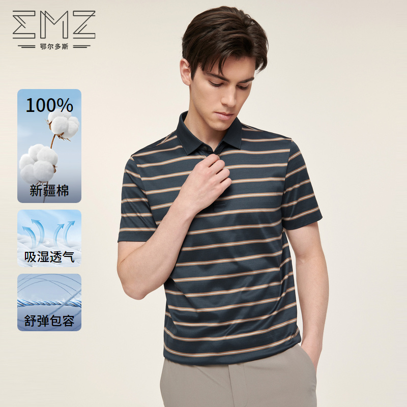 EMZ鄂尔多斯夏季男士纯棉polo衫高级商务翻领条纹宽松短袖t恤上衣