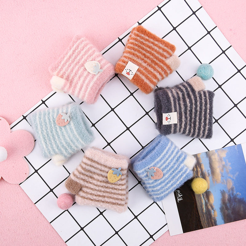 冬季保暖手套宝宝婴儿手套0-1岁男孩女宝宝半指露指手套3-6-8个月