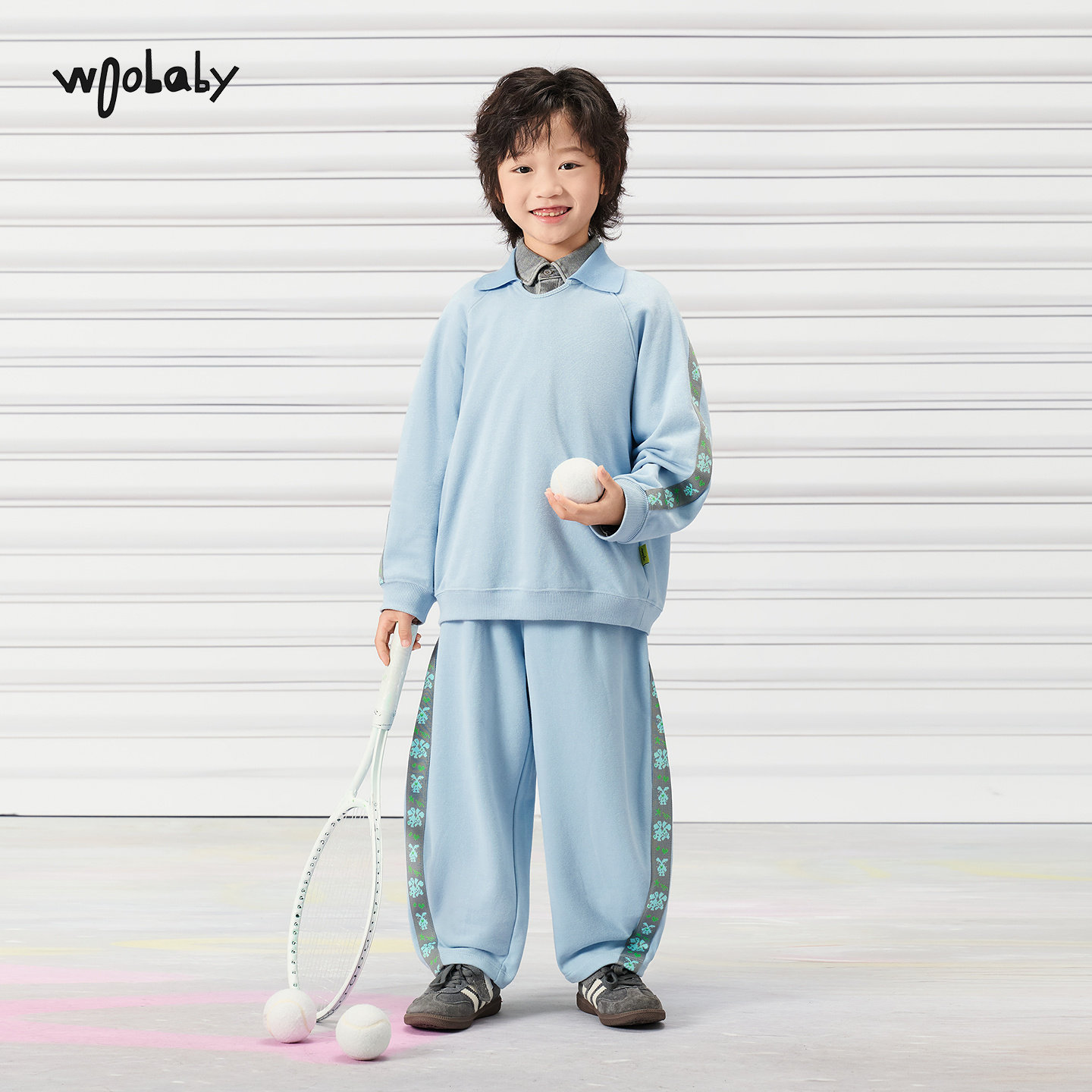 woobaby儿童休闲套装男女童26年春慕斯棉卫衣运动裤