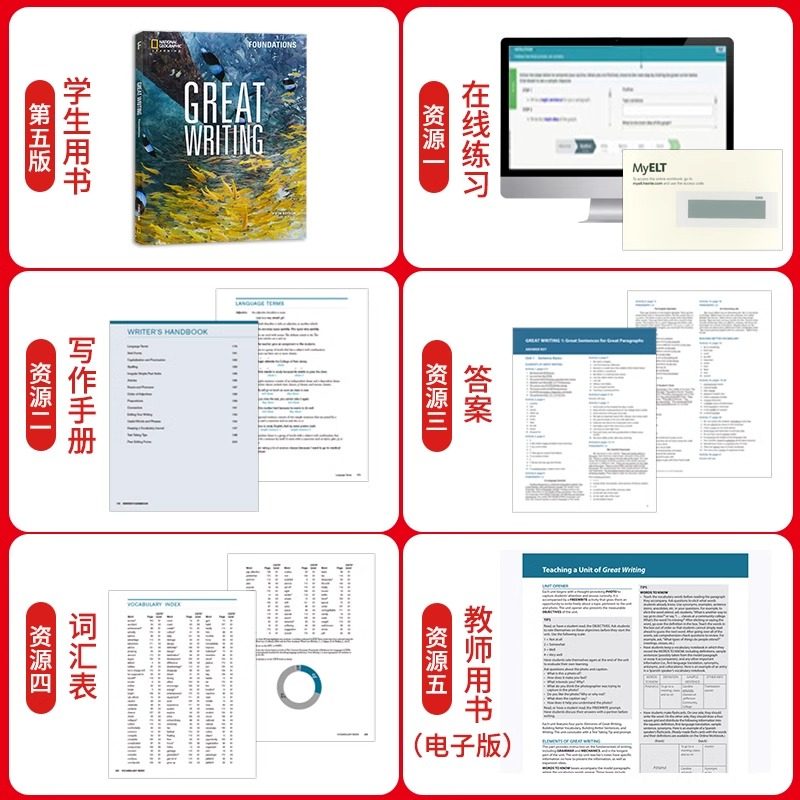 原版进口新版第五版美国国家地理 Great Writing foundations 1-5级别greatwriting教材中学生课外练习大写作专项教程greatwriting