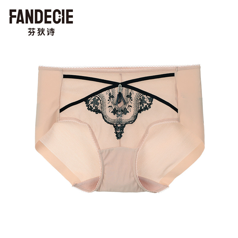 芬狄诗商场同款内裤女刺绣蕾丝舒适透气中腰包臀三角裤F200647