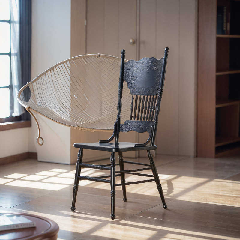 森家烁居温莎椅复古椅子美式法式餐椅中古椅欧式椅实木餐椅黑色凳