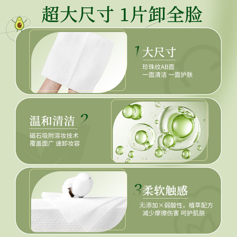 超亚牛油果卸妆湿巾一次性独立包装敏感肌温和卸眼唇脸三合一清洁
