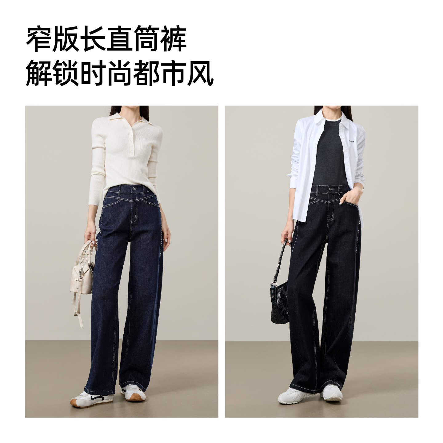 逸阳深蓝色不易褪色直筒牛仔裤女2025年秋新款侧分割显瘦阔腿裤子