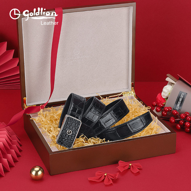【不锈钢鳄鱼皮】金利来钢扣皮带男真皮腰带裤带礼盒装 节日礼物