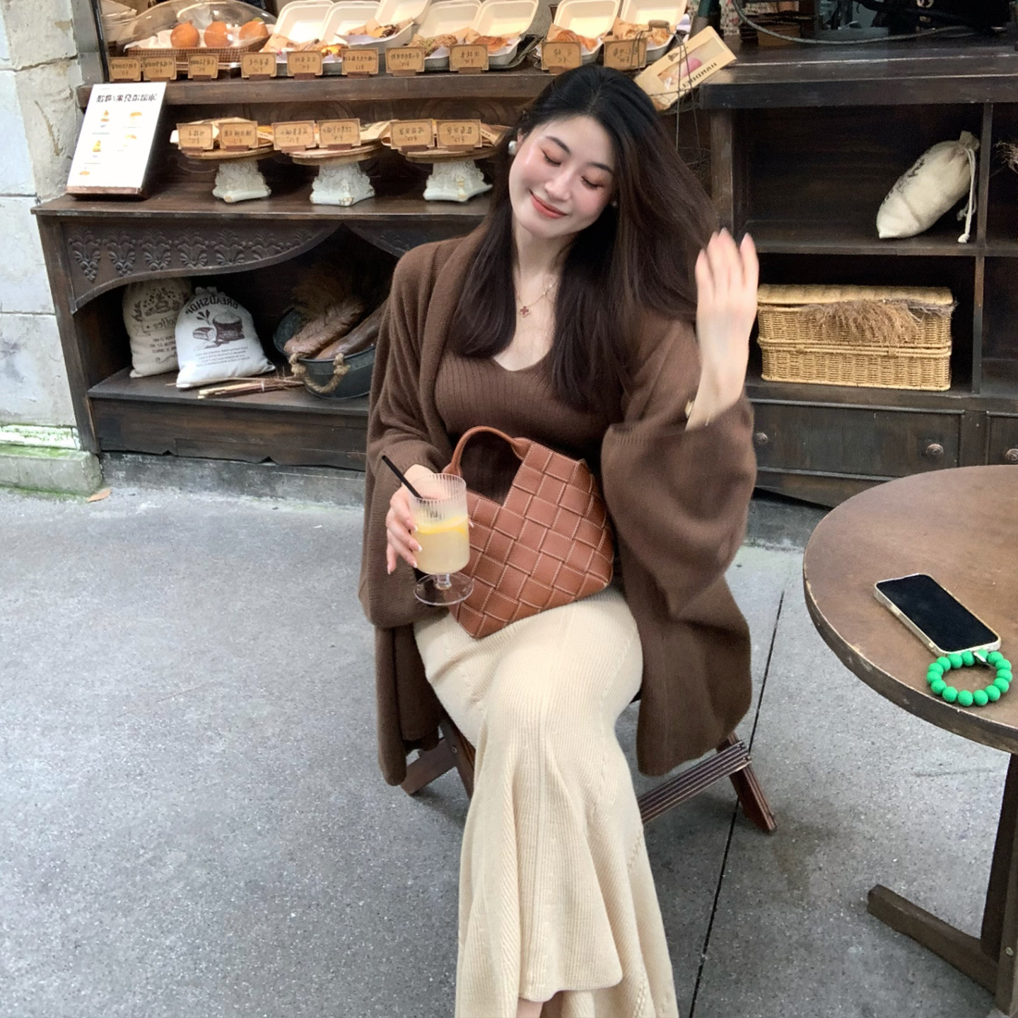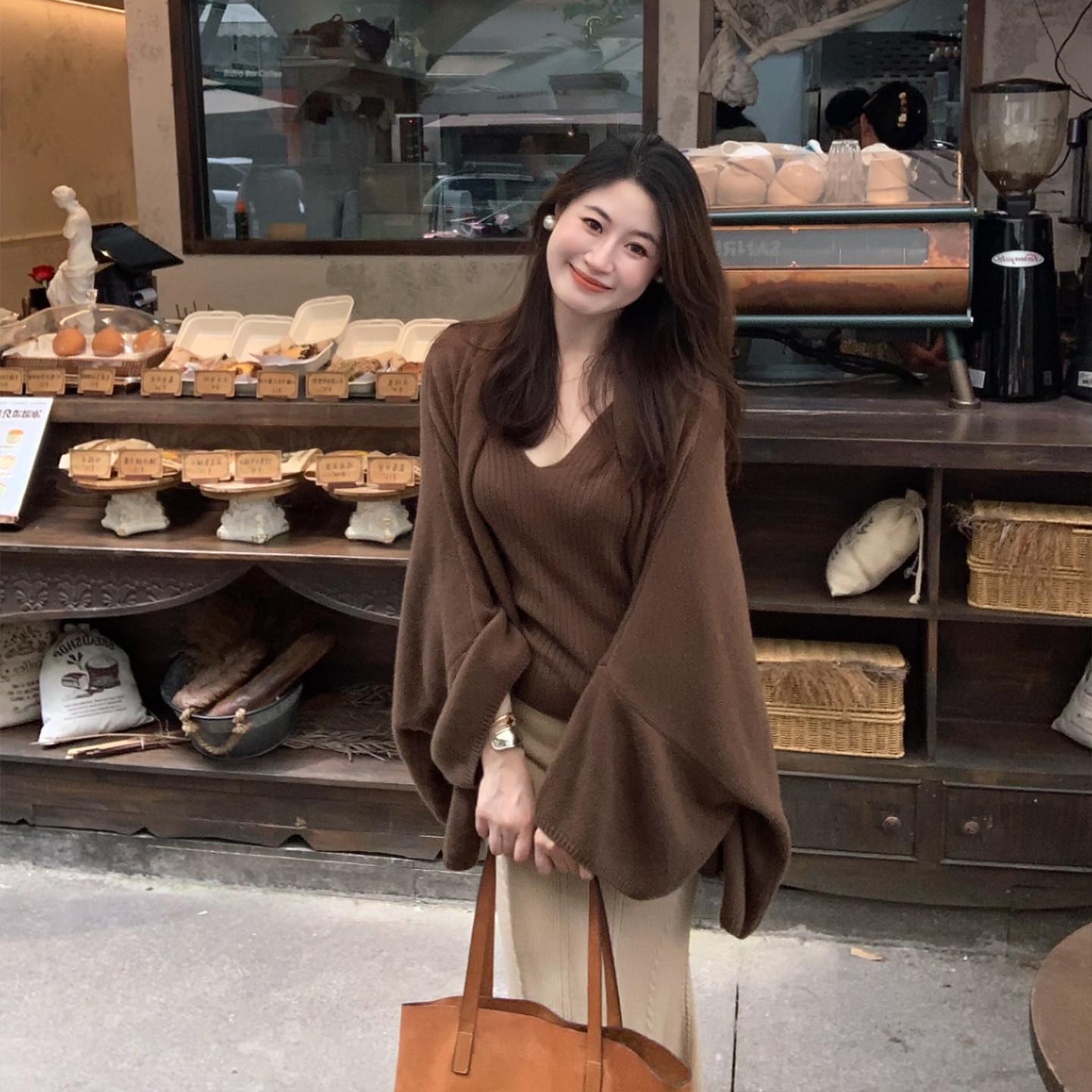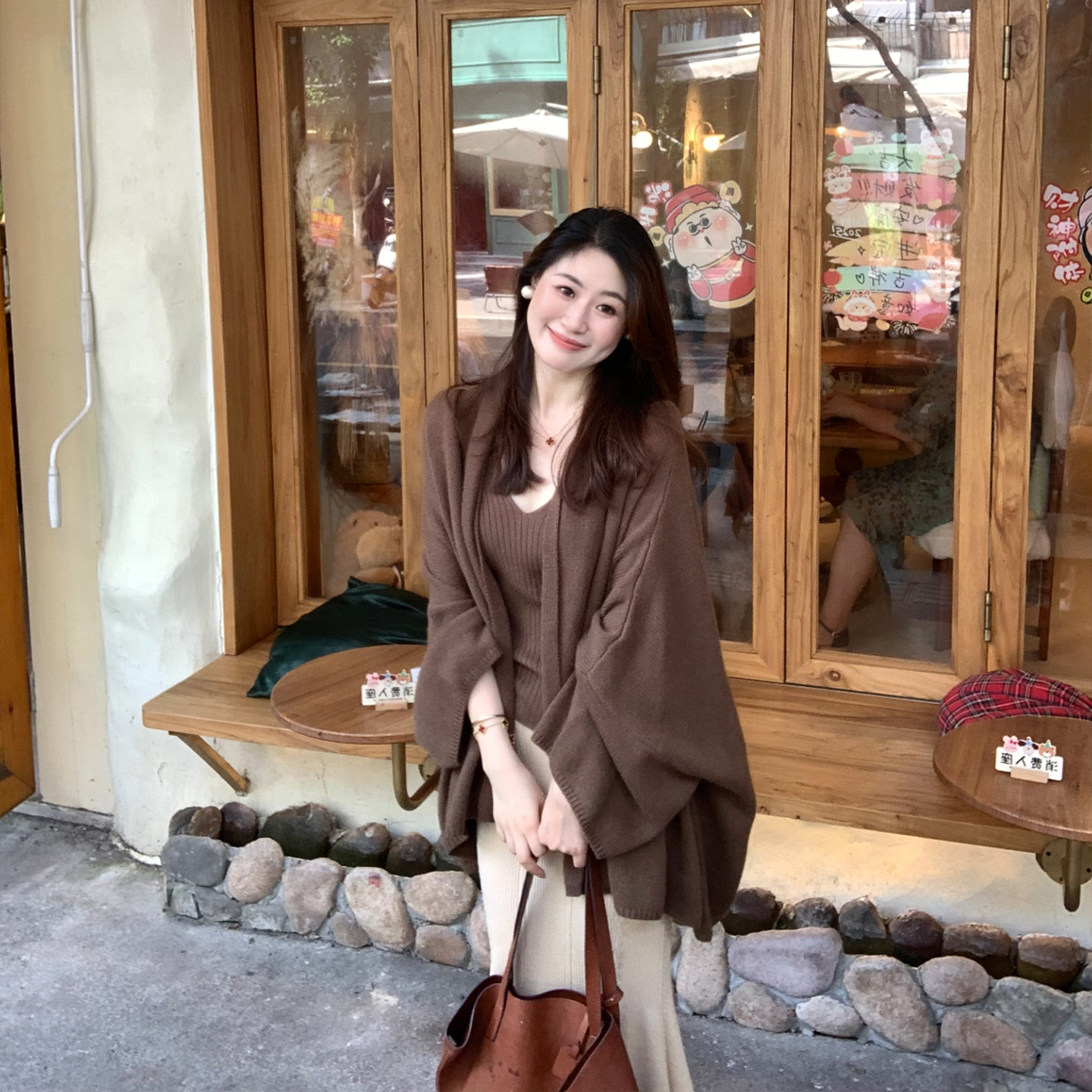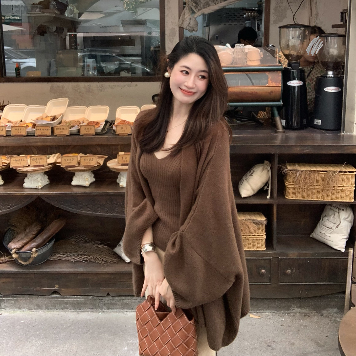 Echoone 卡亚森林 慵懒感气质开衫蝙蝠袖外套针织吊带打底套装女