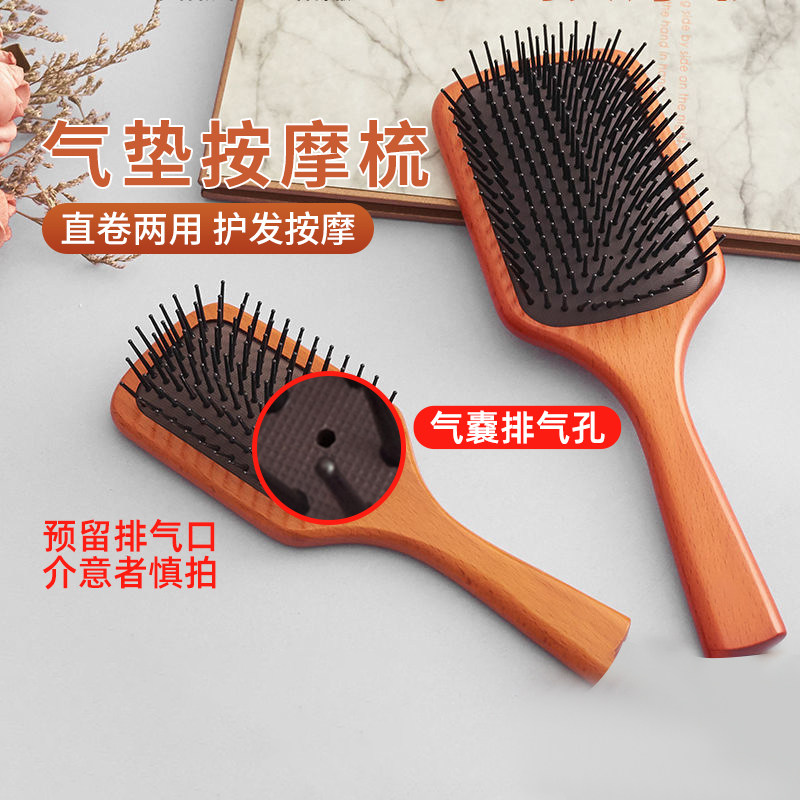 千屿气垫梳实木榉木一梳到底美发蓬松排骨梳家用大号气囊按摩梳子
