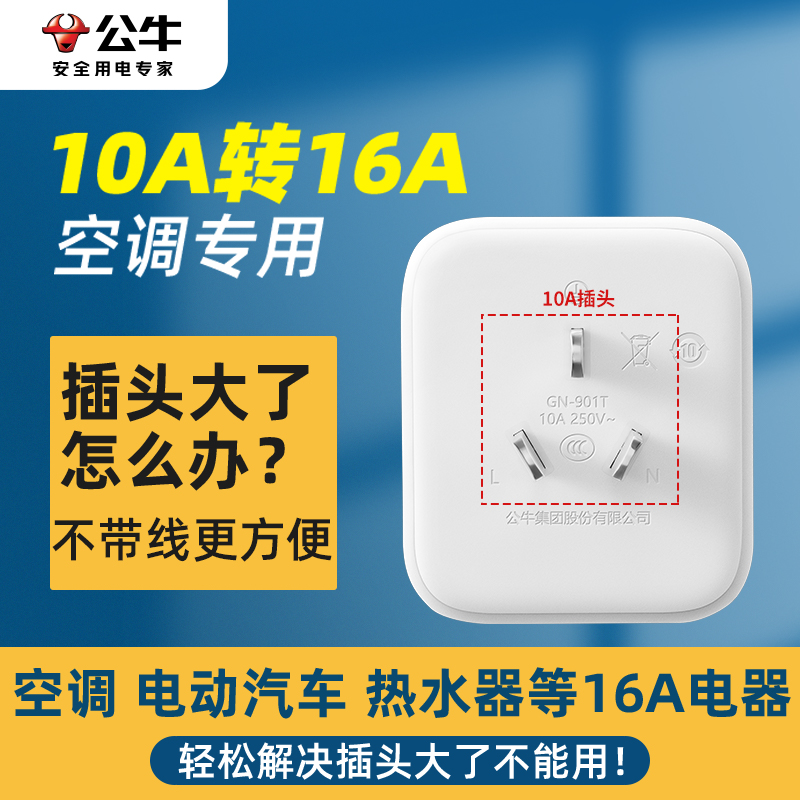 公牛10a转16a插座空调专用大孔转换器16安三孔插头排插线板延长线