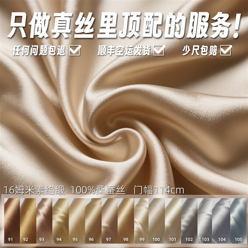 高端16姆米纯色真丝素绉缎里衬布料高端桑蚕丝睡衣面料服装丝绸F3
