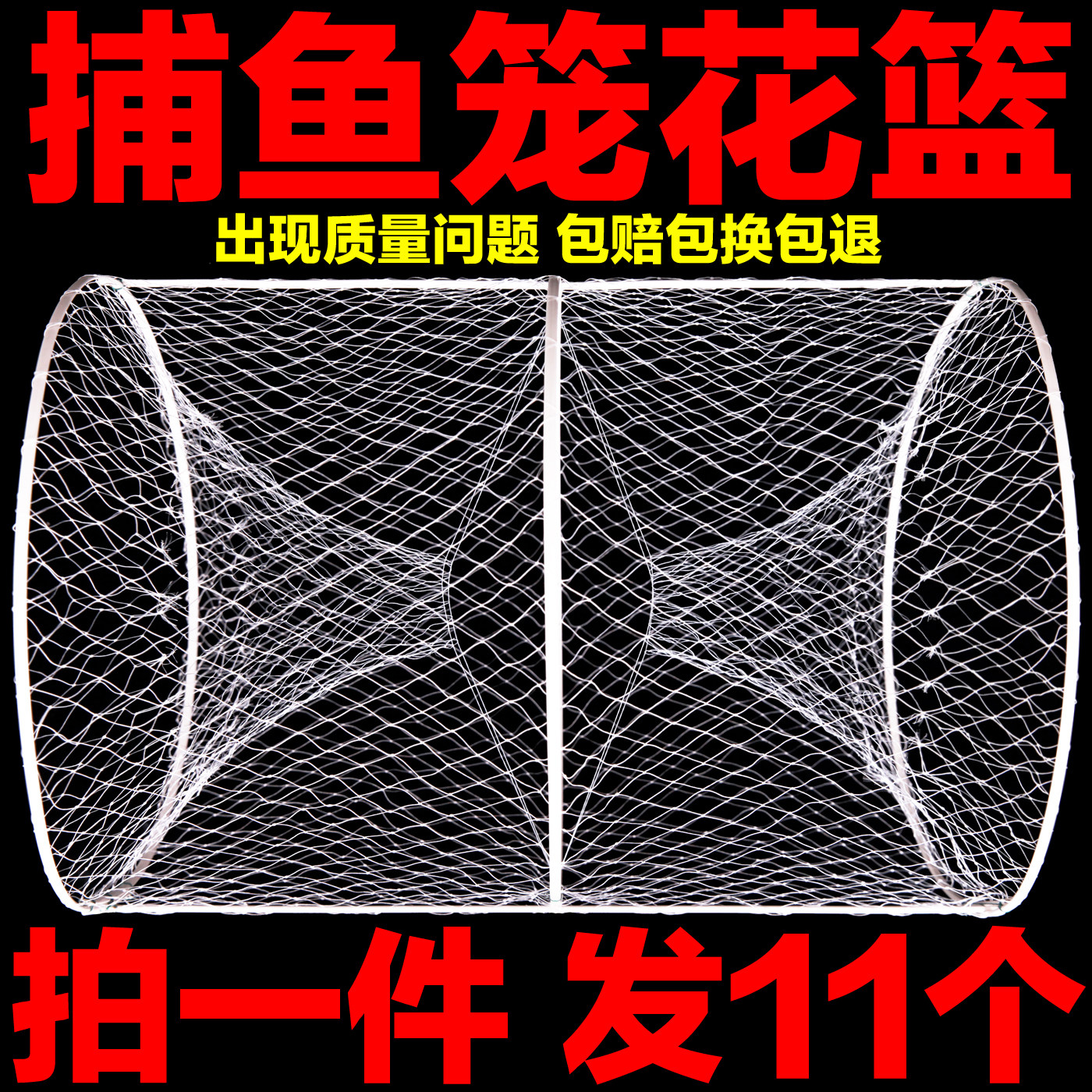 渔网捕鱼笼花篮竹编鱼笼鲫鱼笼黑鱼笼甲鱼笼自动折叠鳖笼圆形花篮