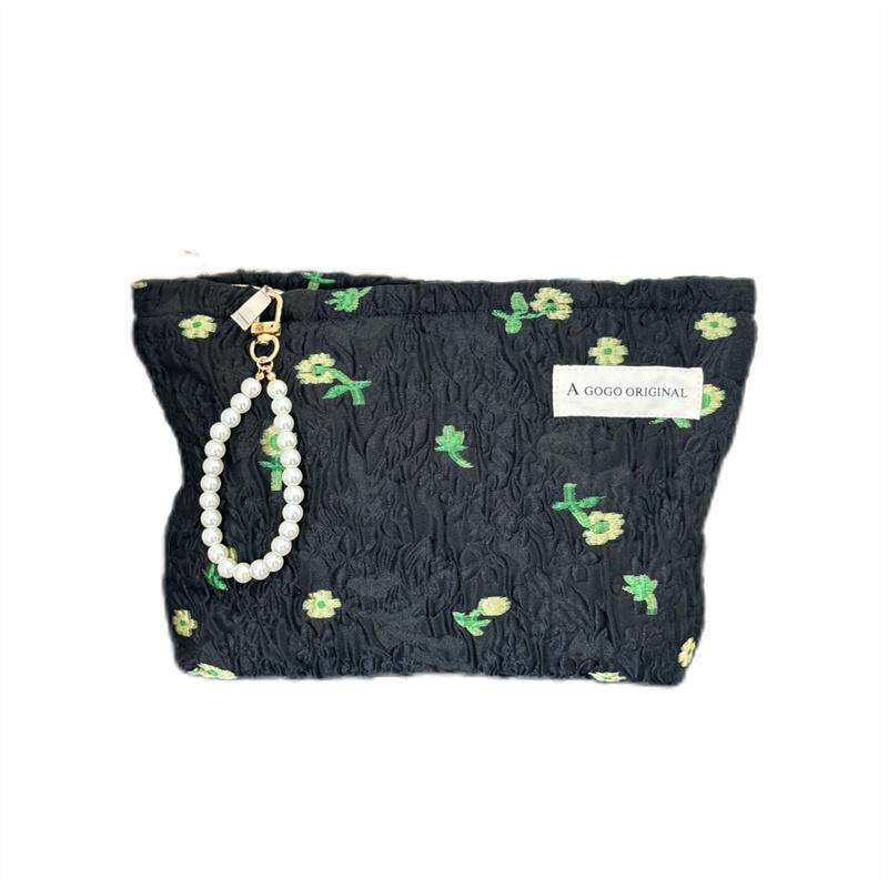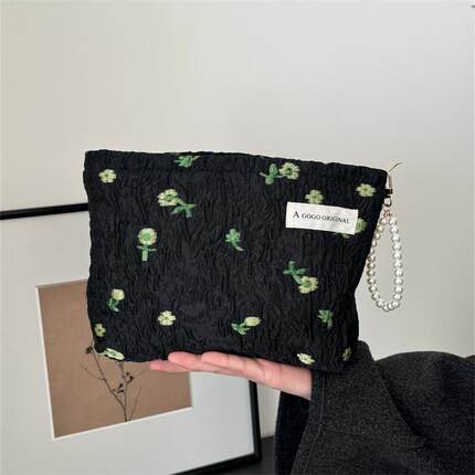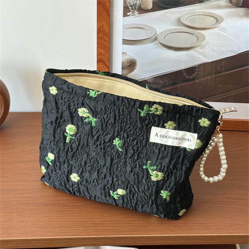 ins气质暗黑提花刺绣化妆包小众高级感大容量便携化妆包收纳袋
