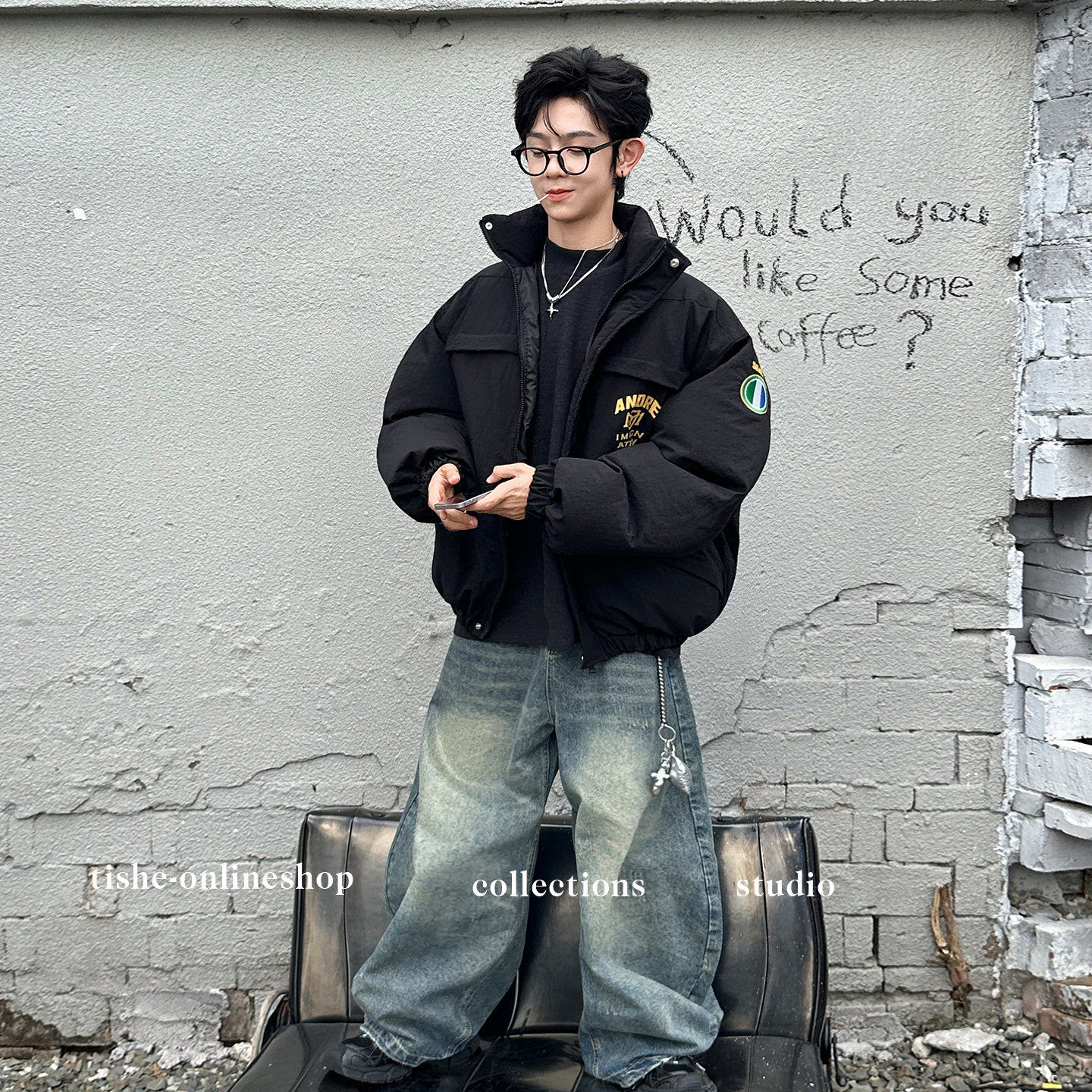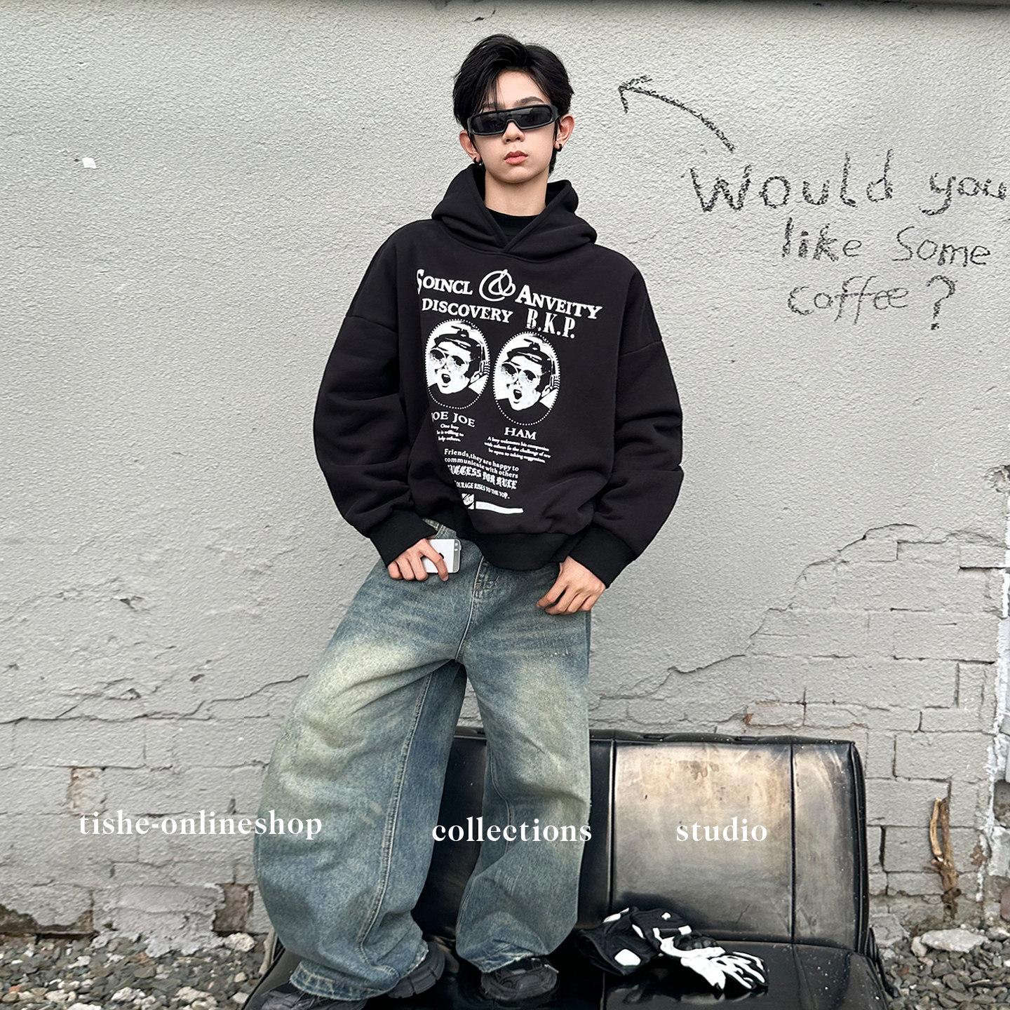 男童秋冬牛仔裤2025新款中大男童宽松磨毛长裤青少年冬装弯刀裤子