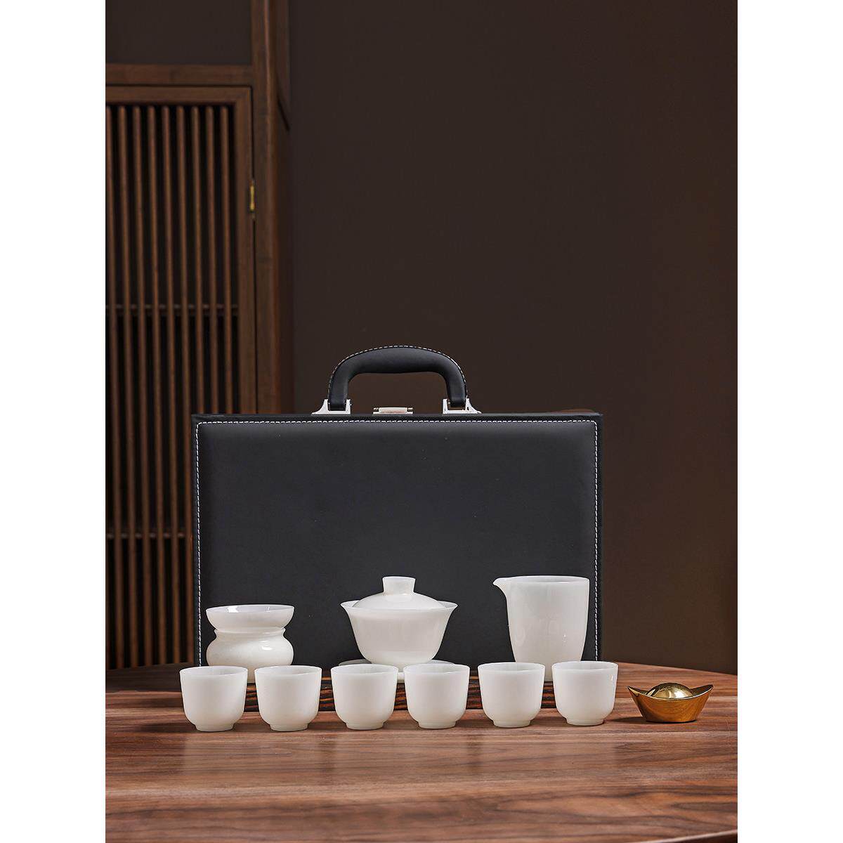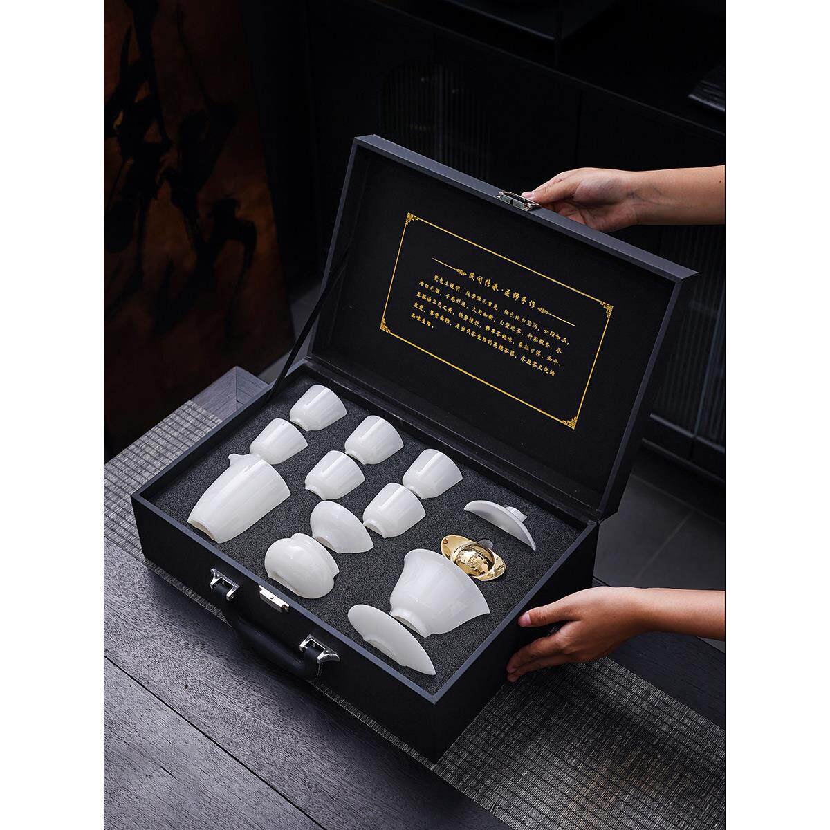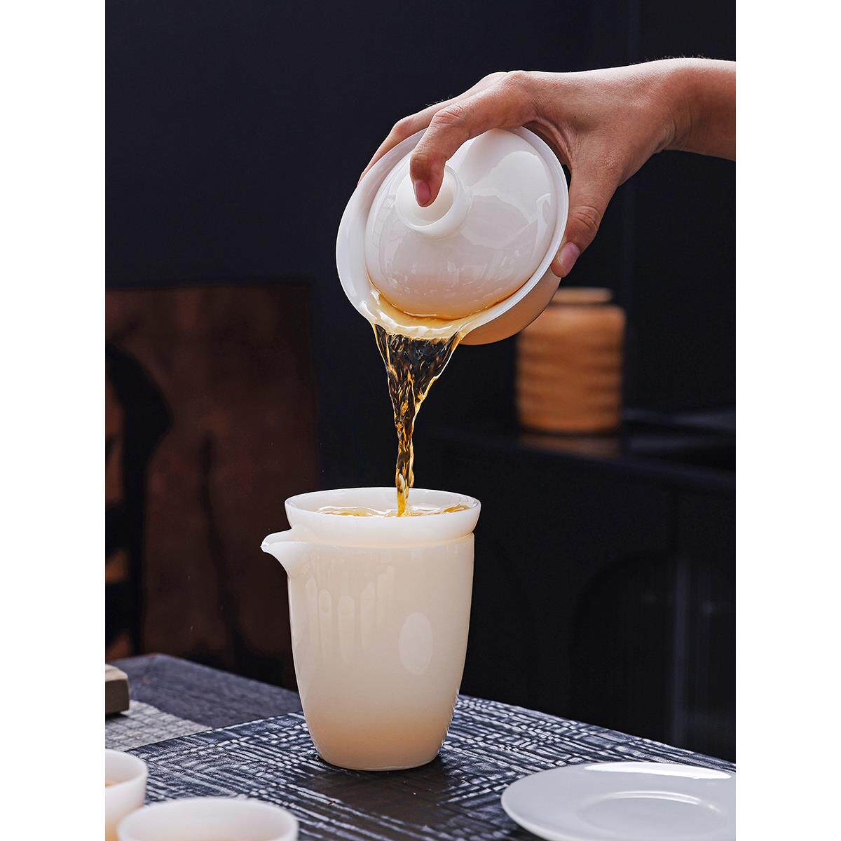 羊脂玉瓷冰种璞玉茶具套装家用高档不烫手陶瓷盖碗茶杯礼盒装送礼