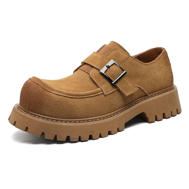 真皮德比鞋男款磨砂大头皮鞋英伦风厚底增高复古高级感懒人工装鞋