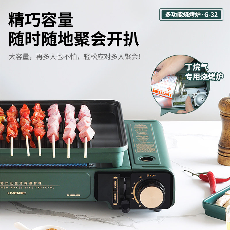 利仁卡式炉燃气户外防风便携式烤肉锅家用烧烤盘烤鱼烤肉锅燃气