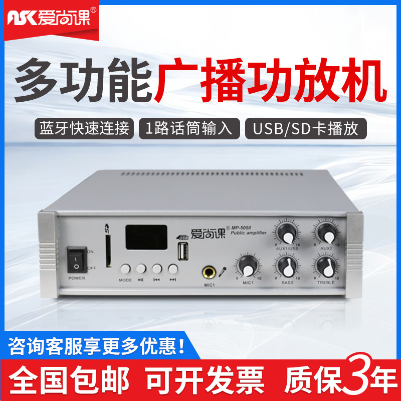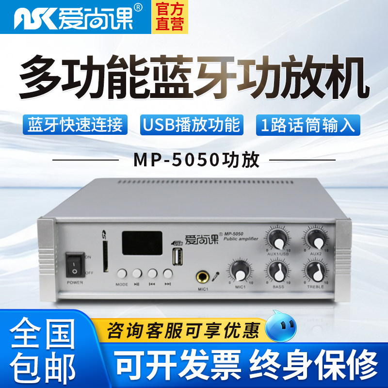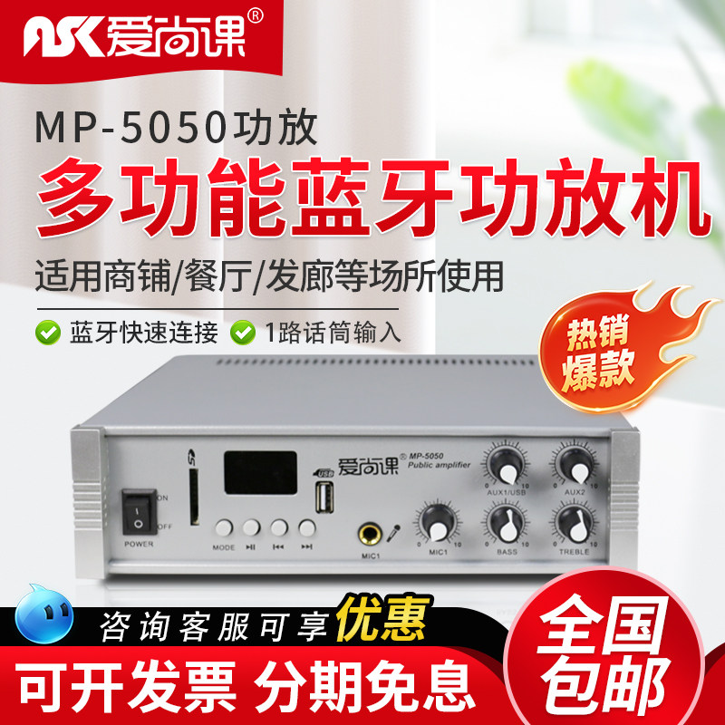 爱尚课 MP-5050广播定压功放机50W家用背景音乐USB吸顶喇叭小功放
