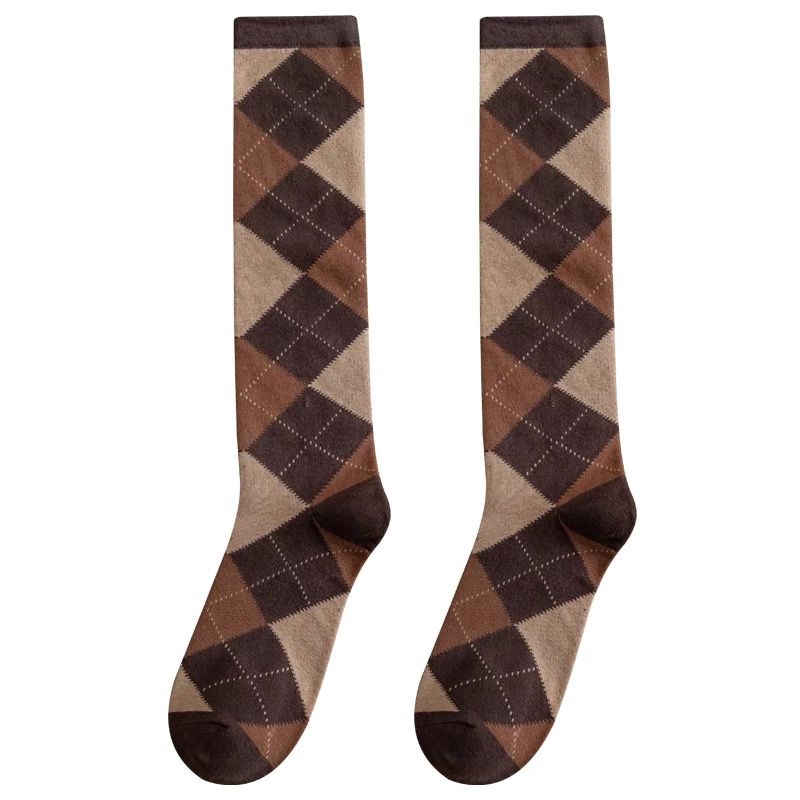 春日小猎手】英伦风女袜菱格袜子女显瘦小腿袜加厚高筒袜打底袜