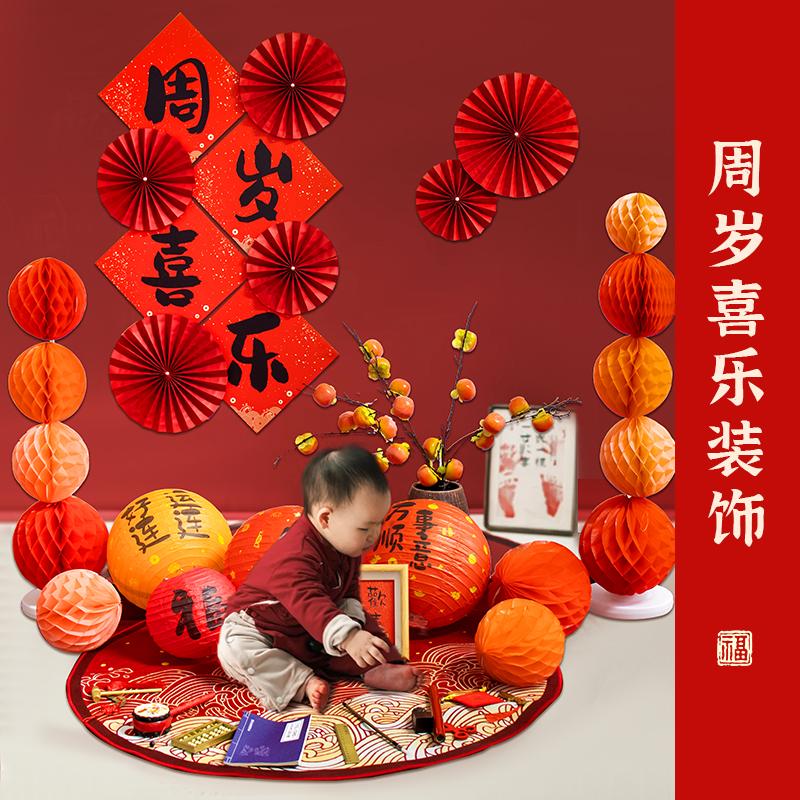 男女宝宝一周岁礼宴生日快乐场景布置装饰抓周仪式感背景墙氛围感