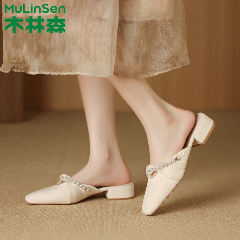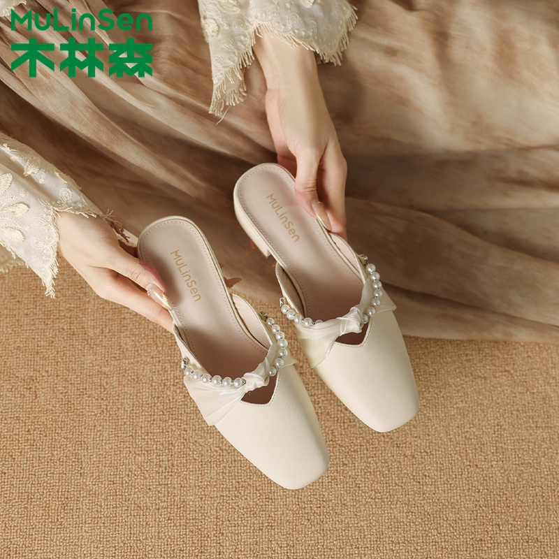 木林森优雅法式穆勒拖鞋珍珠半拖