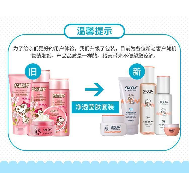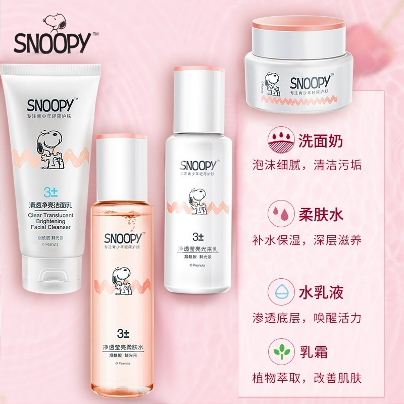 学生青少年女护肤品SNOOPY史努比净透莹肤组合套装洁面乳水乳霜