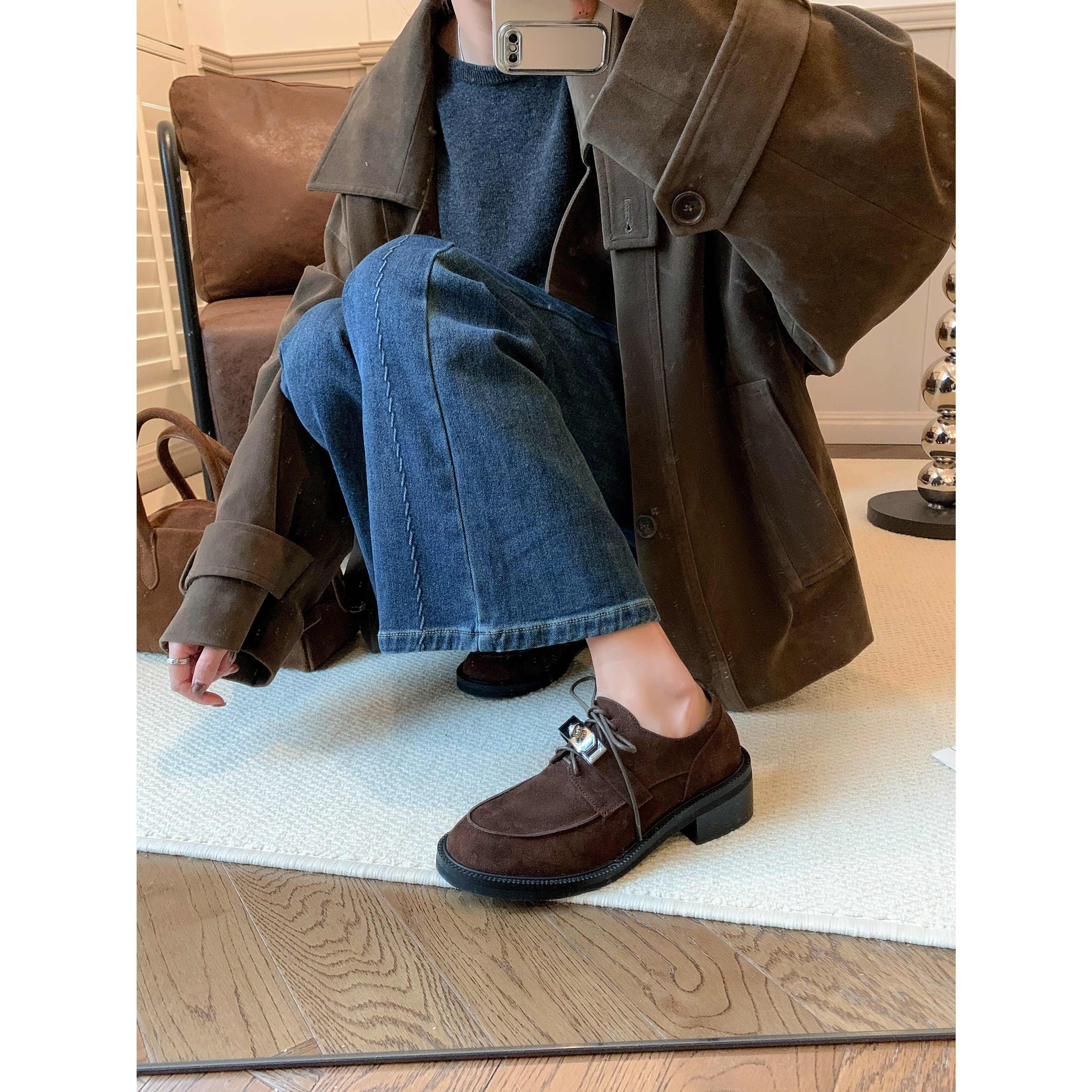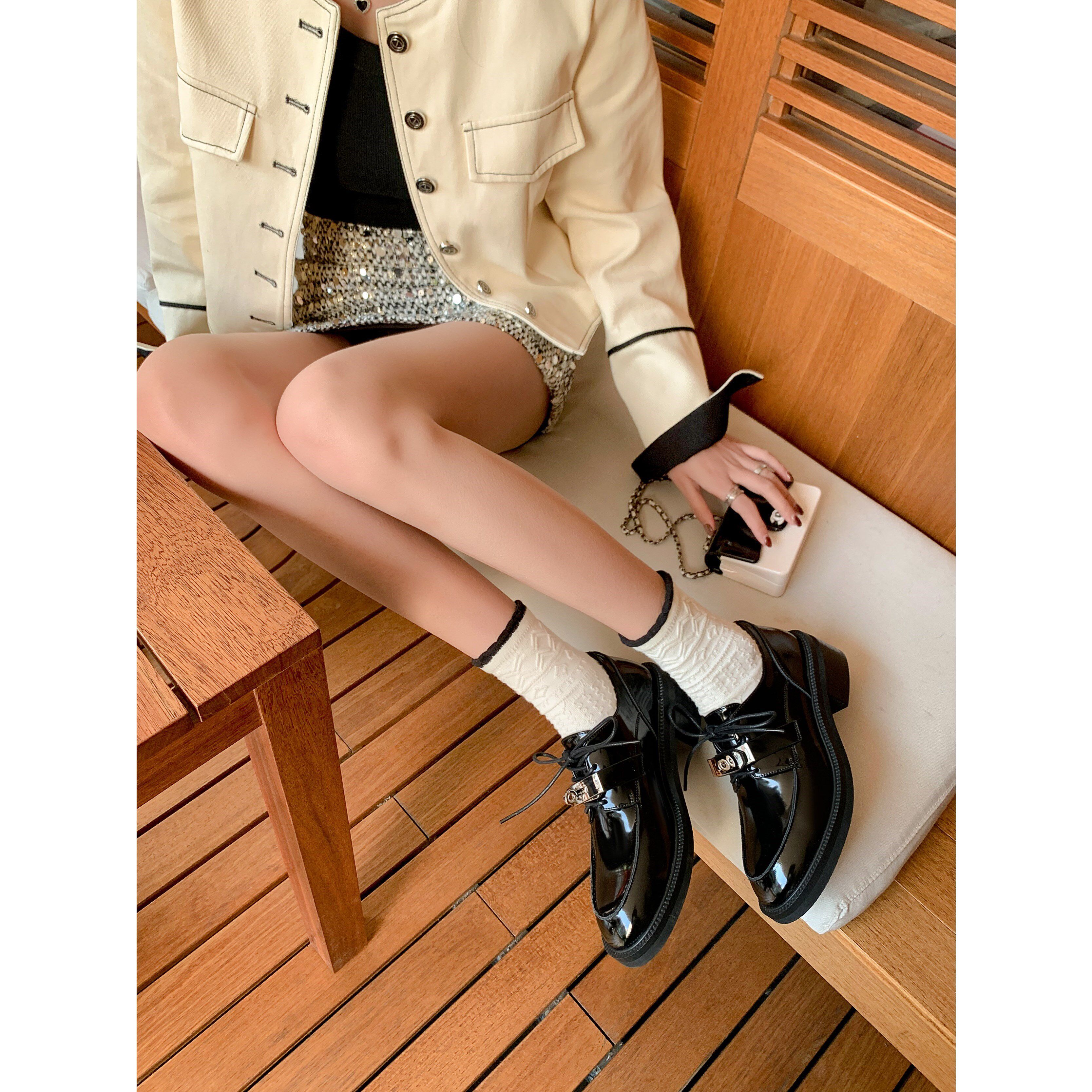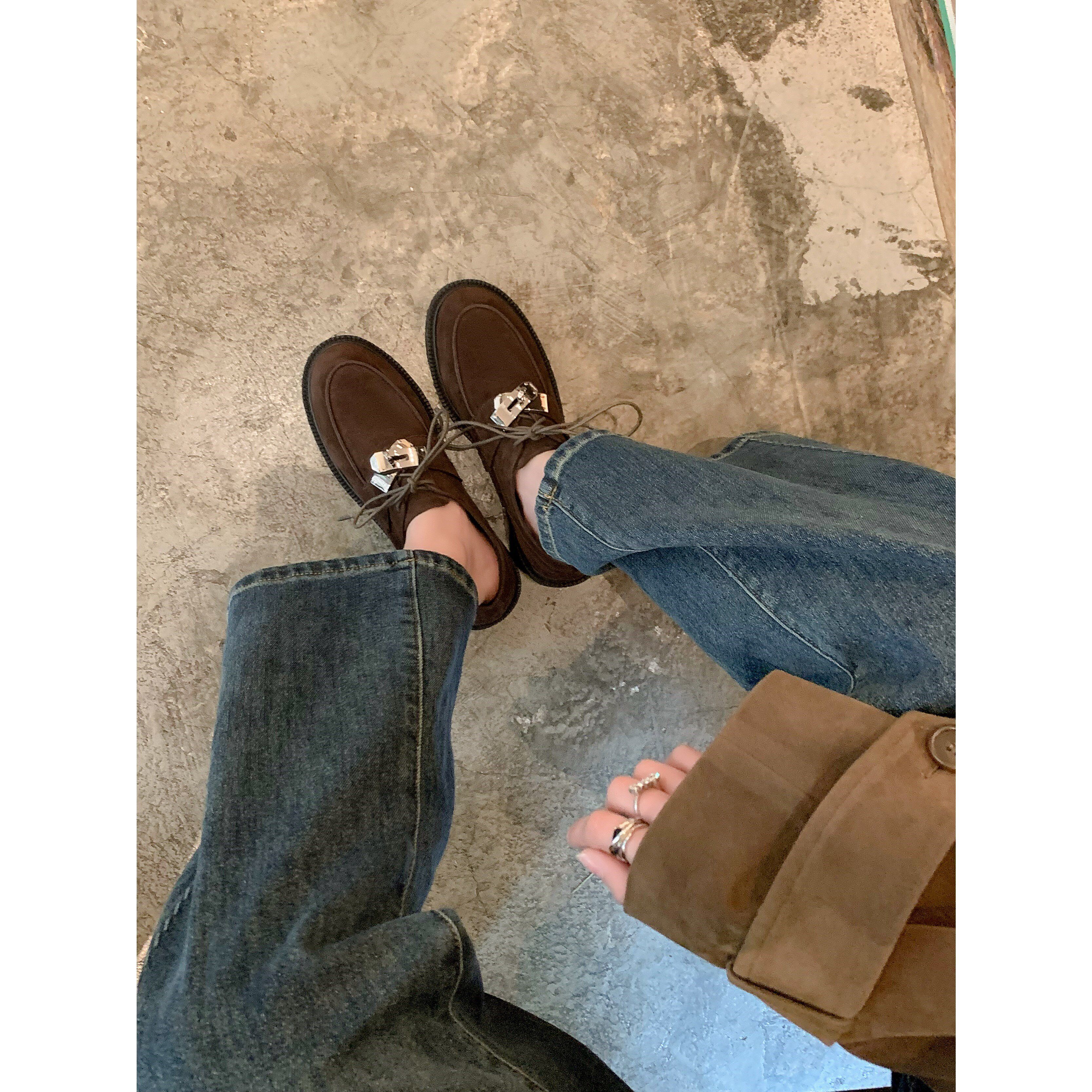 2026新款秋冬新款金属扣德比鞋女厚底小皮鞋复古英伦风系带单鞋女