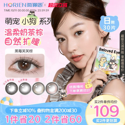 【花色上新】海俪恩萌宠小狗美瞳日抛30片隐形眼镜旗舰店大直径