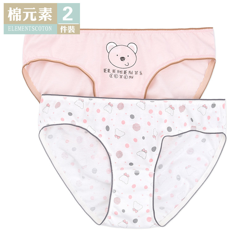 棉元素100纯棉女士三角内裤舒适可爱小熊女生内裤两条装LM564