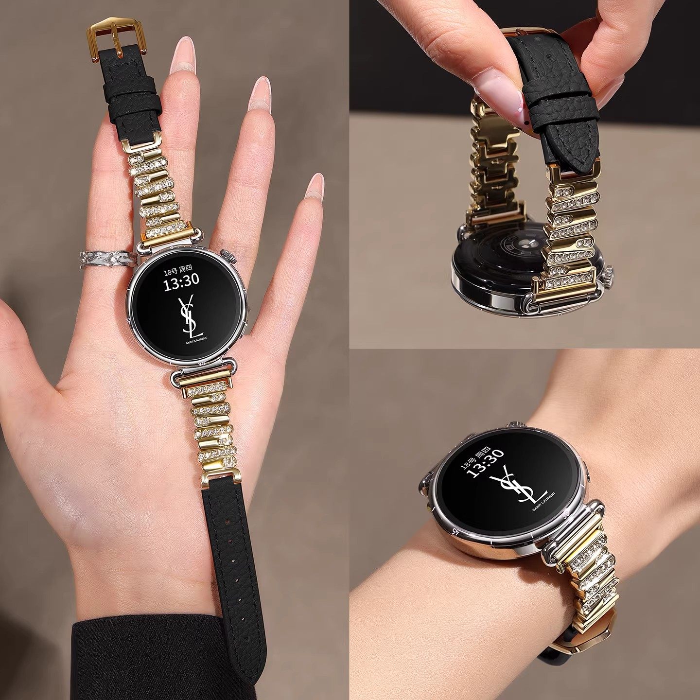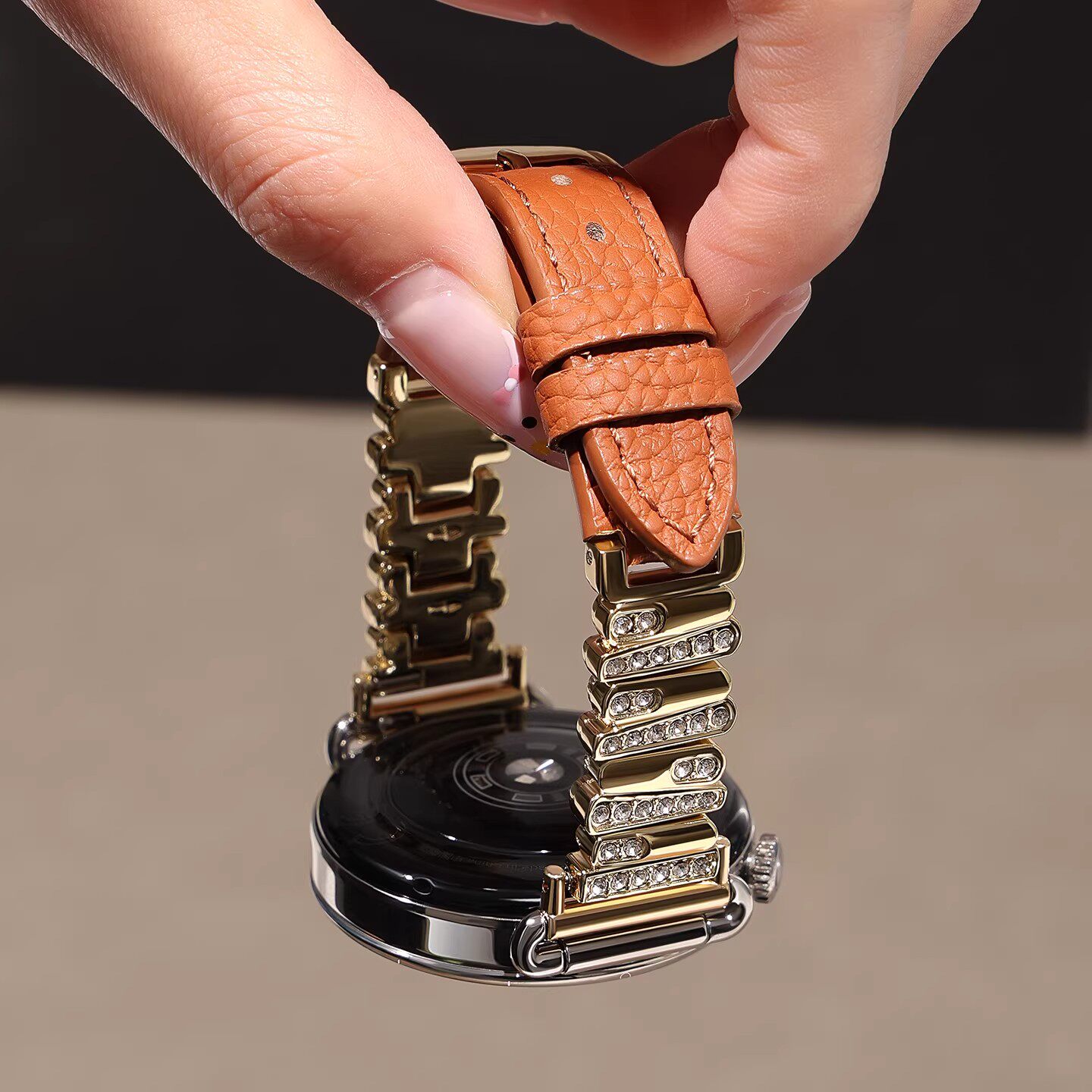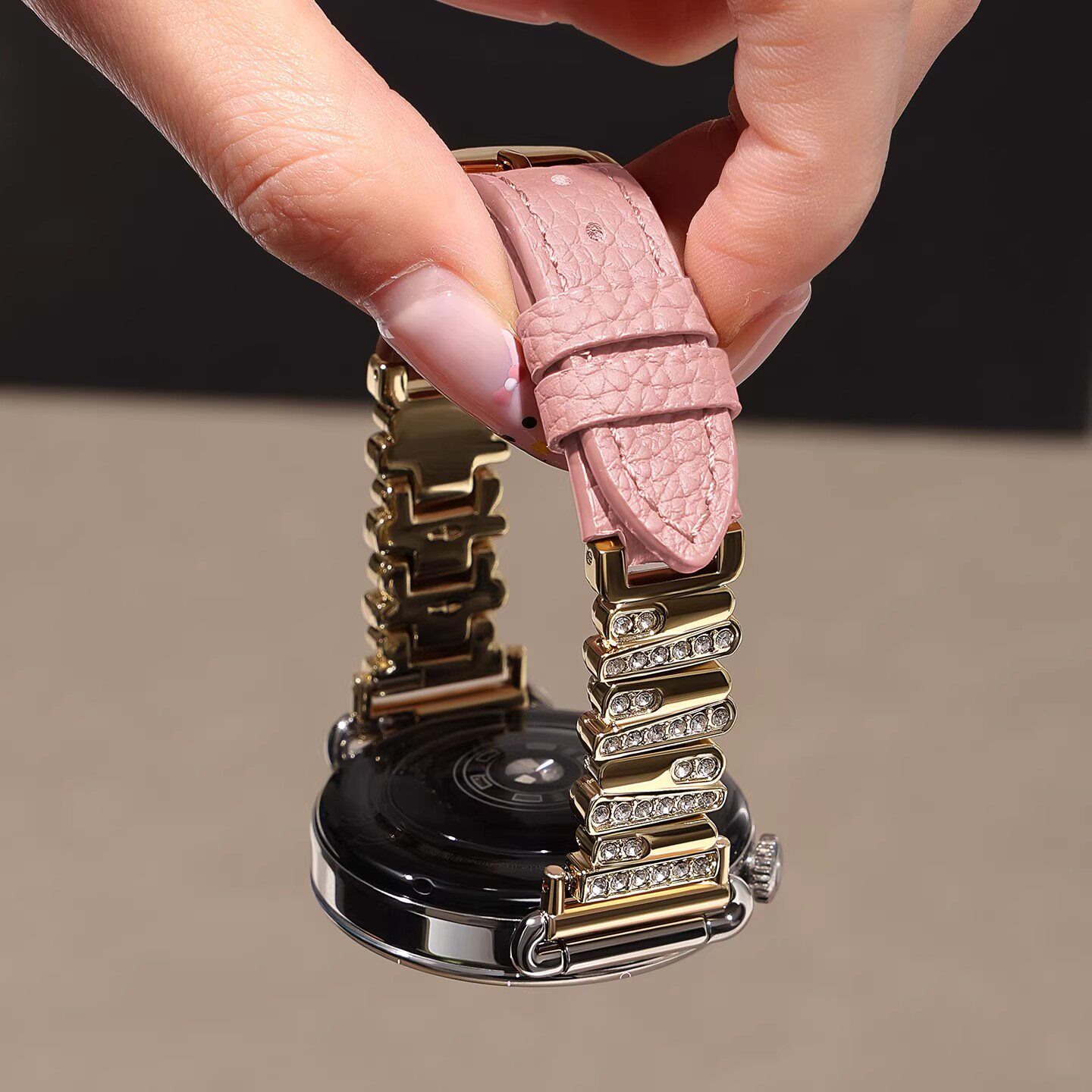 适用于华为gt5表带gt6手表watch5女款镶闪钻gt5pro高级gt4真皮质荔枝纹gt3智能荣耀手腕表5pro秋冬小香风表链