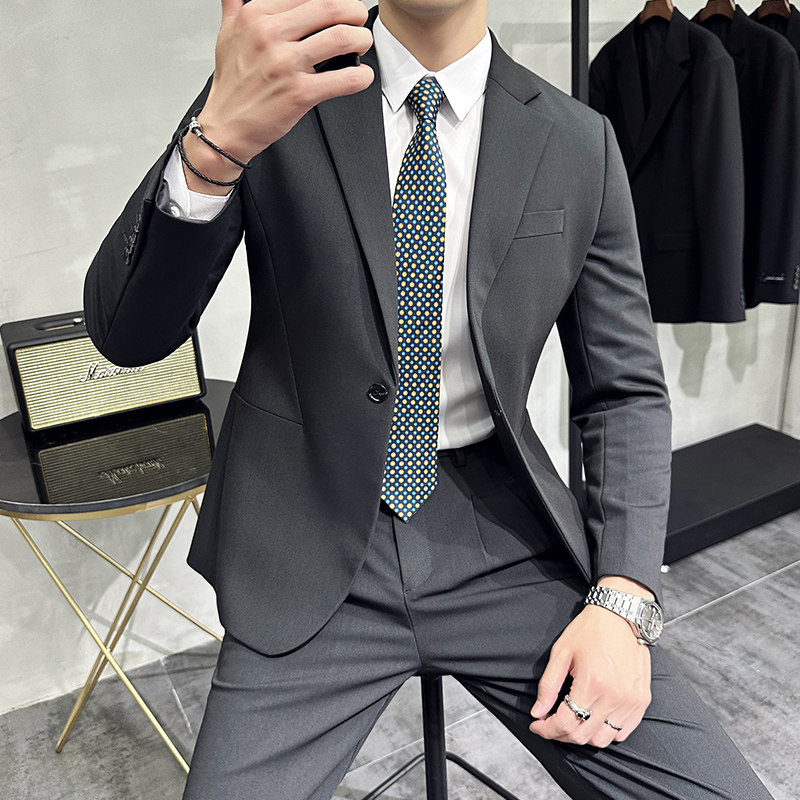 男士休闲痞帅小西装外套高级感商务修身黑色单西上衣结婚西服套装