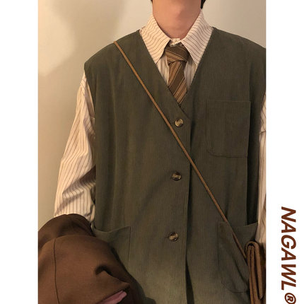 NAGAWL2025秋美式复古学院风纯色百搭V领开衫背心马甲上衣男女潮