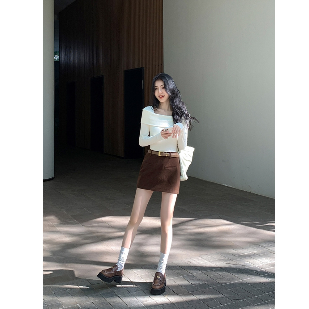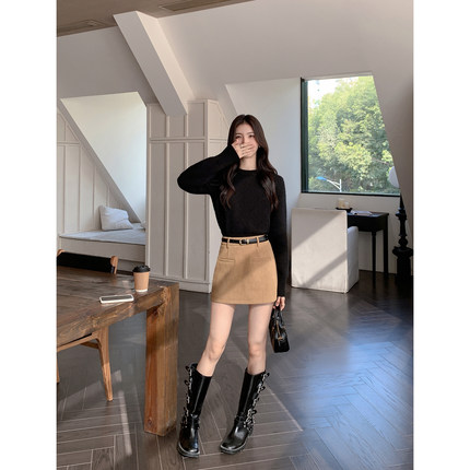 MULVAN 【现货7折】摩登画报 复古灯芯绒a字半身裙女修身超短裙
