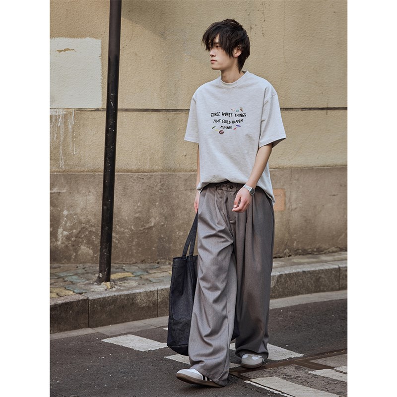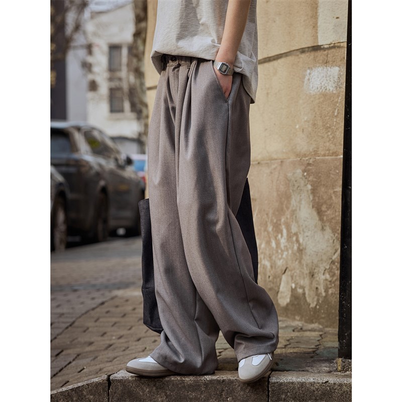 南鹤夏季日系复古宽松阔腿直筒纯色休闲裤男潮牌垂感免烫西装长裤