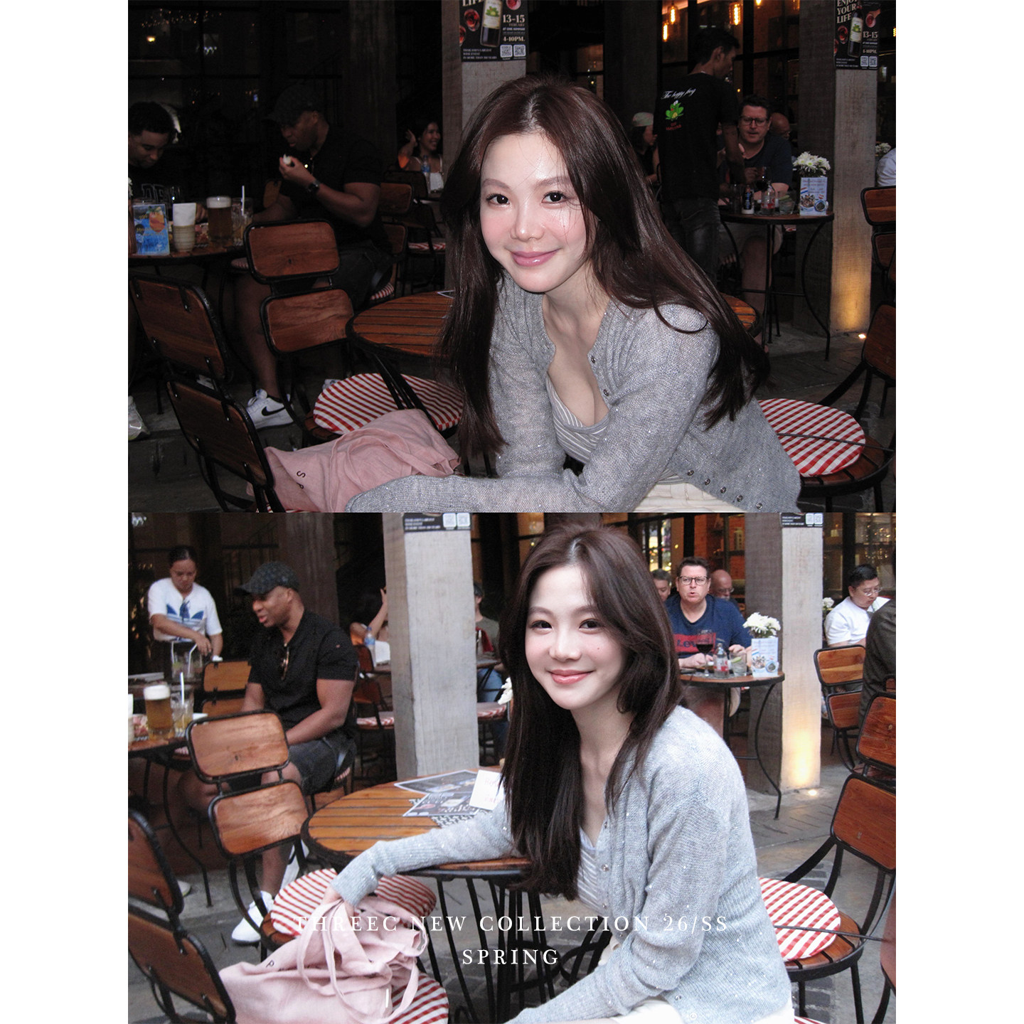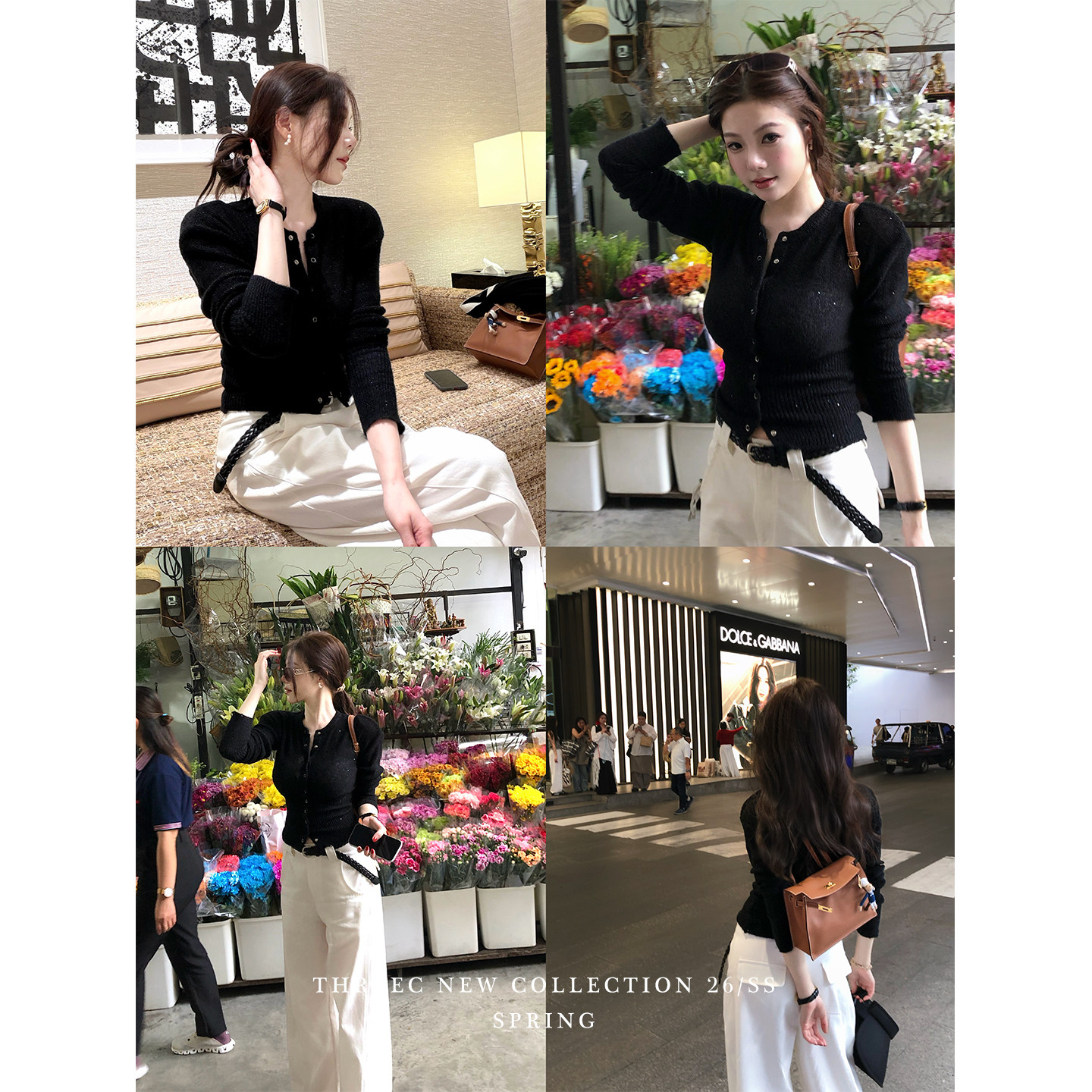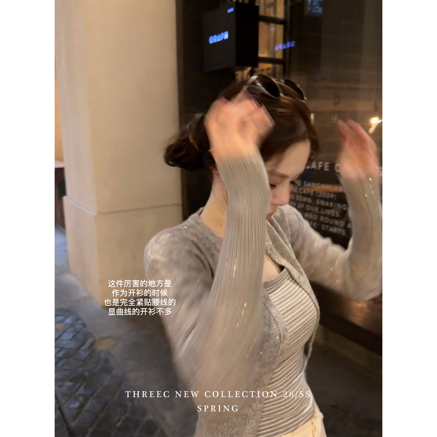 三喜threec【闪钻针织】紧身单排扣内搭针织衫修身短款开衫外套女