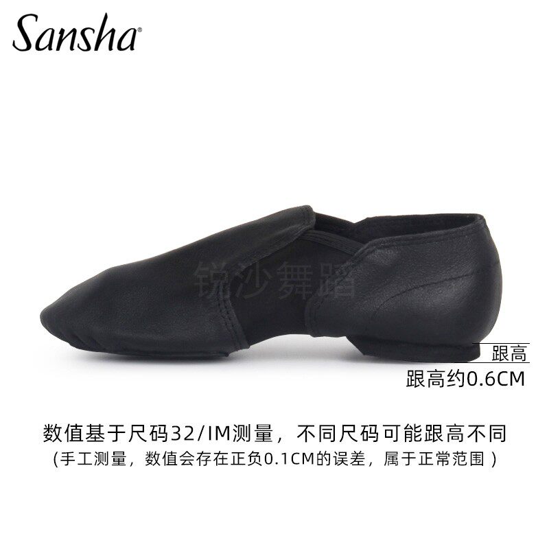 正品Sansha三沙儿童爵士舞鞋真皮软底舞蹈鞋低帮低跟芭蕾舞练功鞋