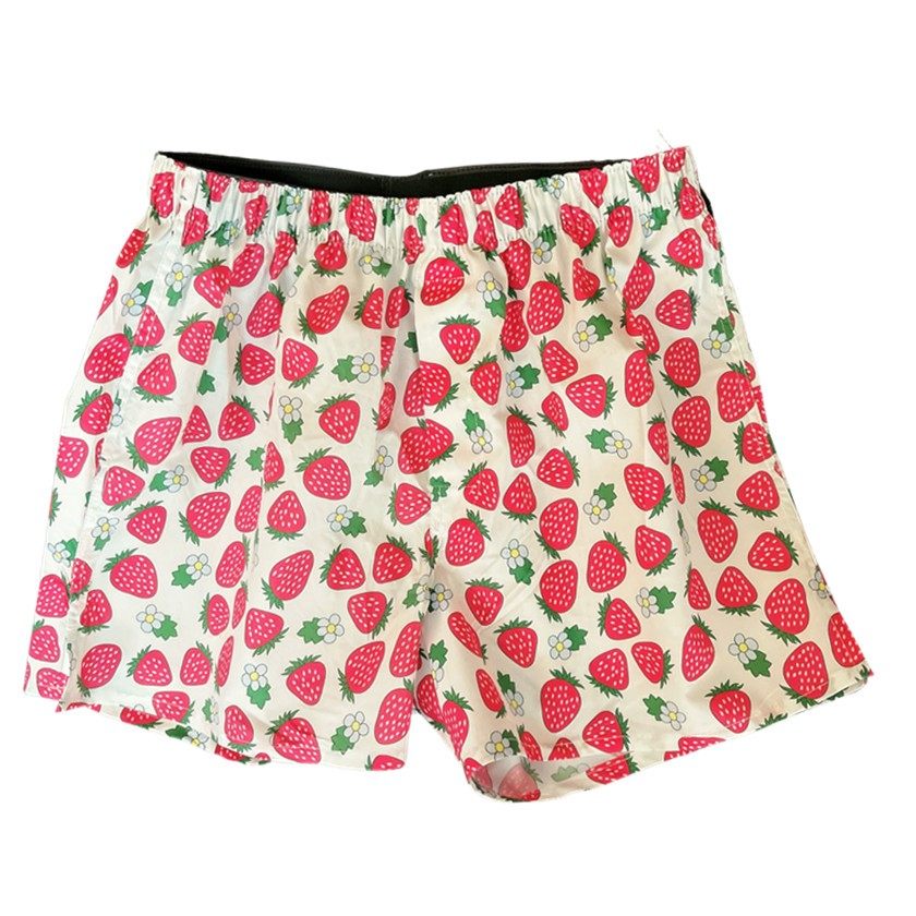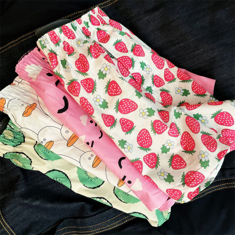宽松纯棉透气四角阿罗裤男士休闲ins草莓潮平角裤居家内裤男短裤