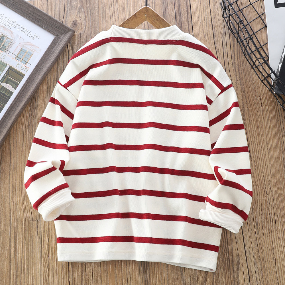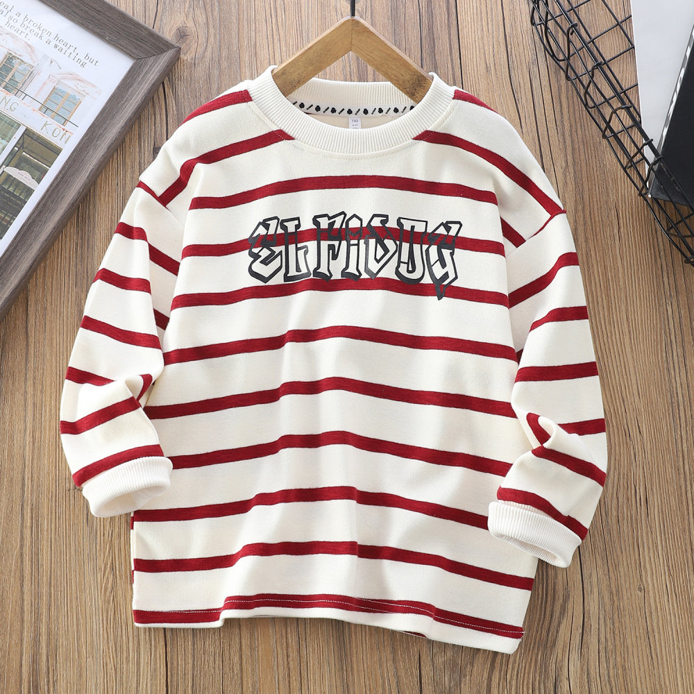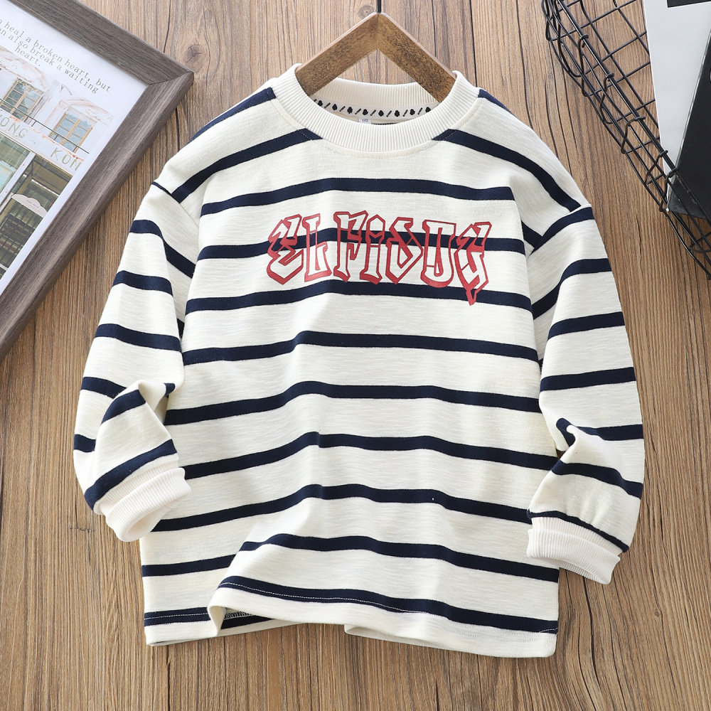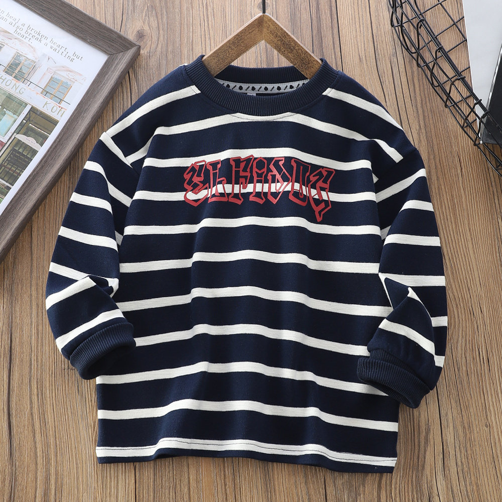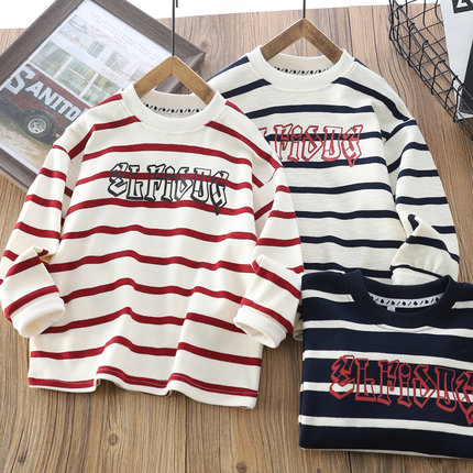 男童纯棉长袖T恤衫厚2025春季新款中大童条纹卫衣全棉打底衫1898