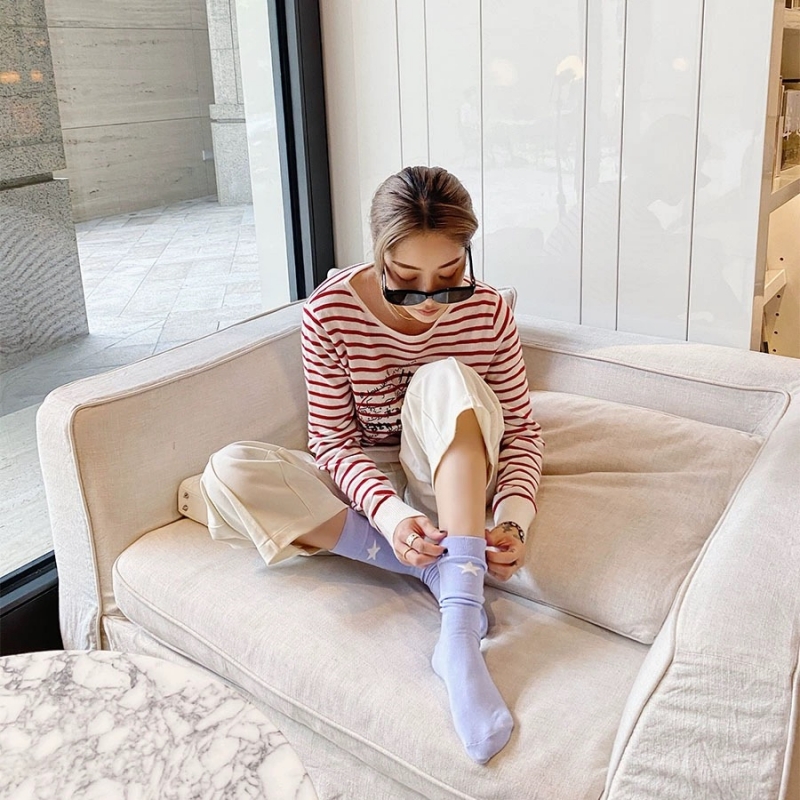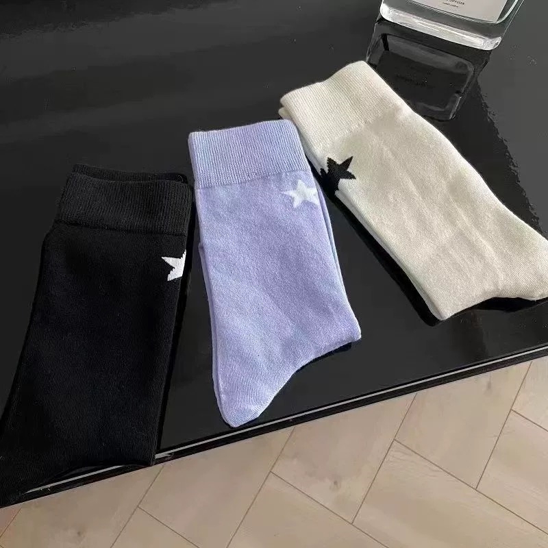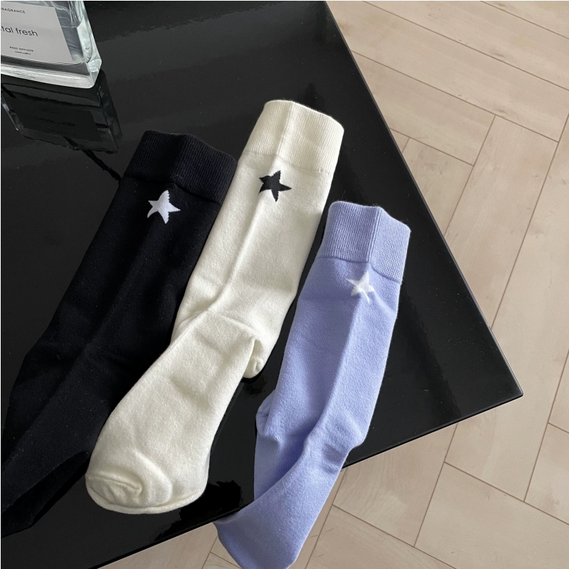 欧货潮牌黑白蓝五角星纯棉中筒袜