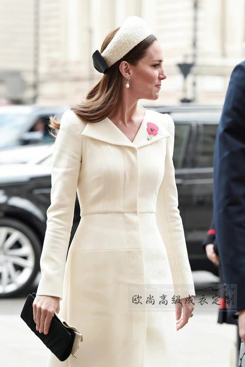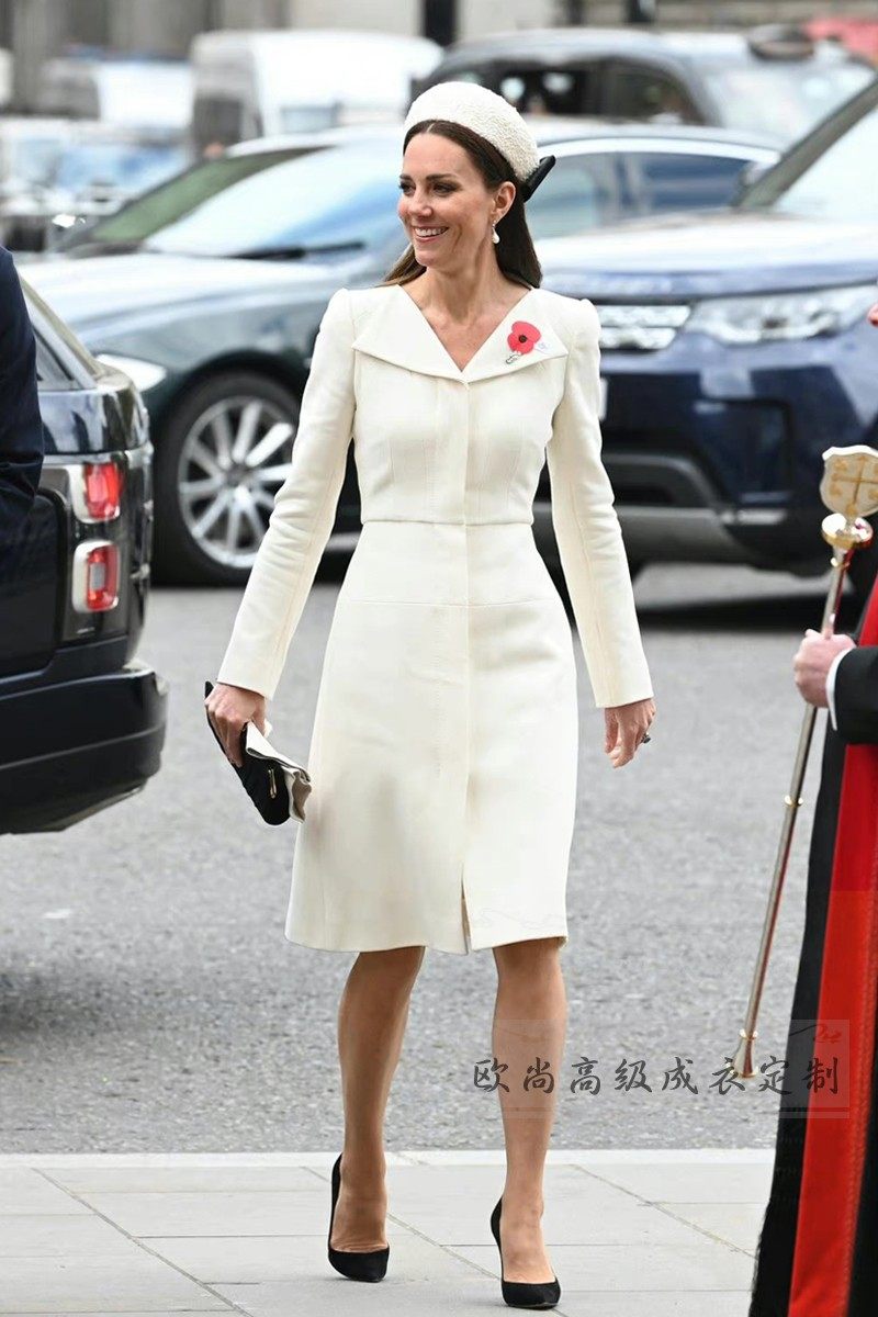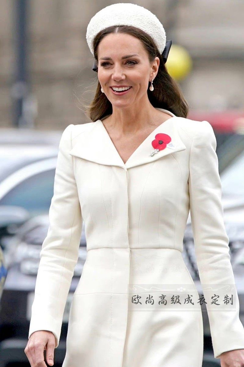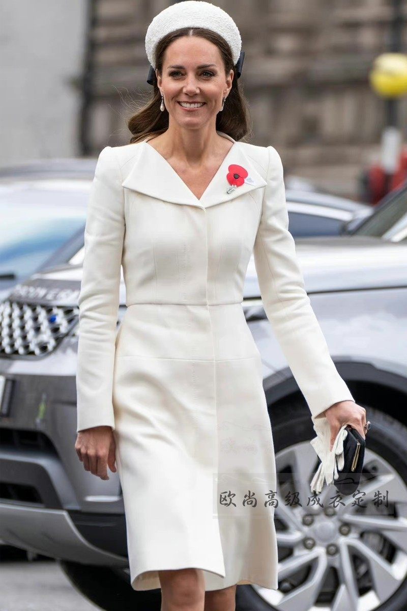 高级定制凯特王妃同款白色羊毛连衣裙女长袖修身显瘦大牌秋冬气质