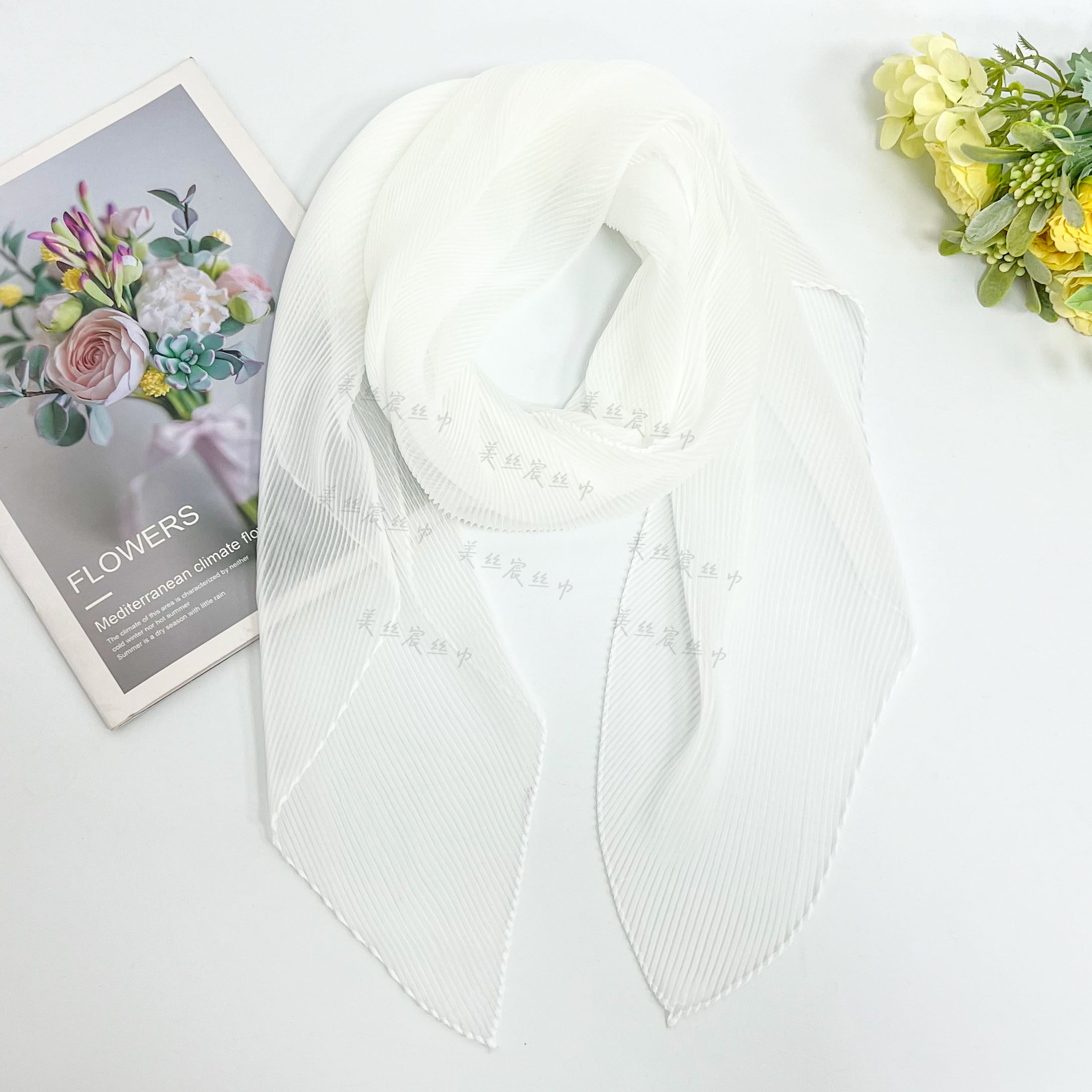 美丝宸正品新款彩虹糖果色小丝巾夏季时尚彩色压皱包头女士围巾