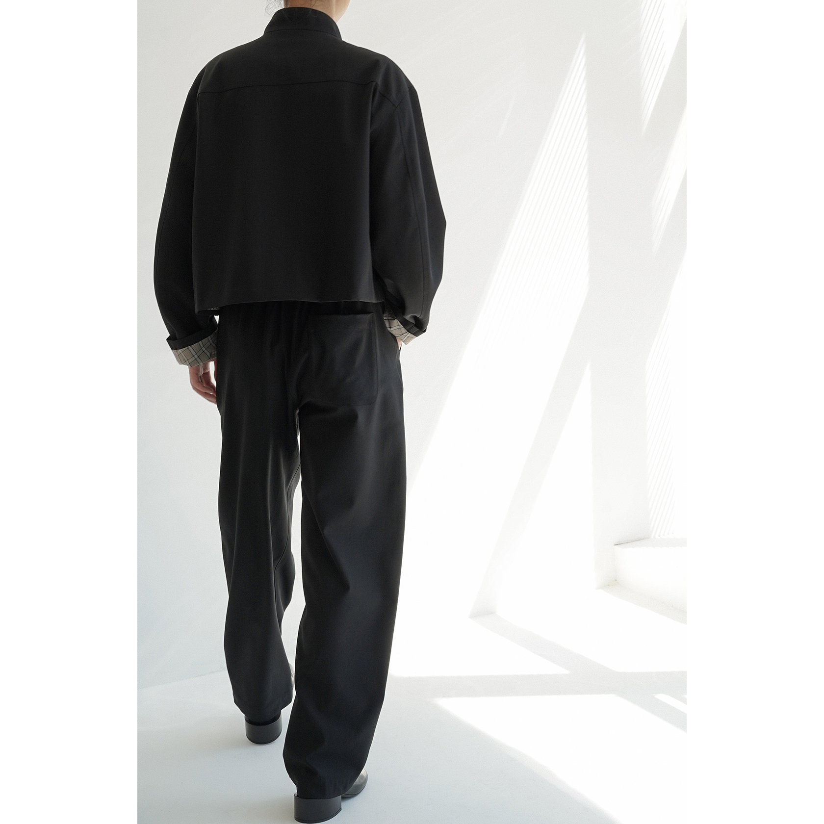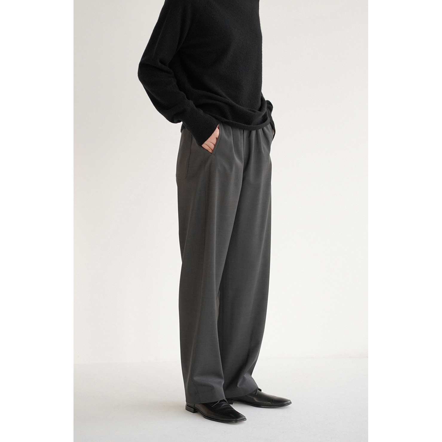 售完不补|黑色精纺羊毛松紧腰直筒长裤 WOODEN SHIP