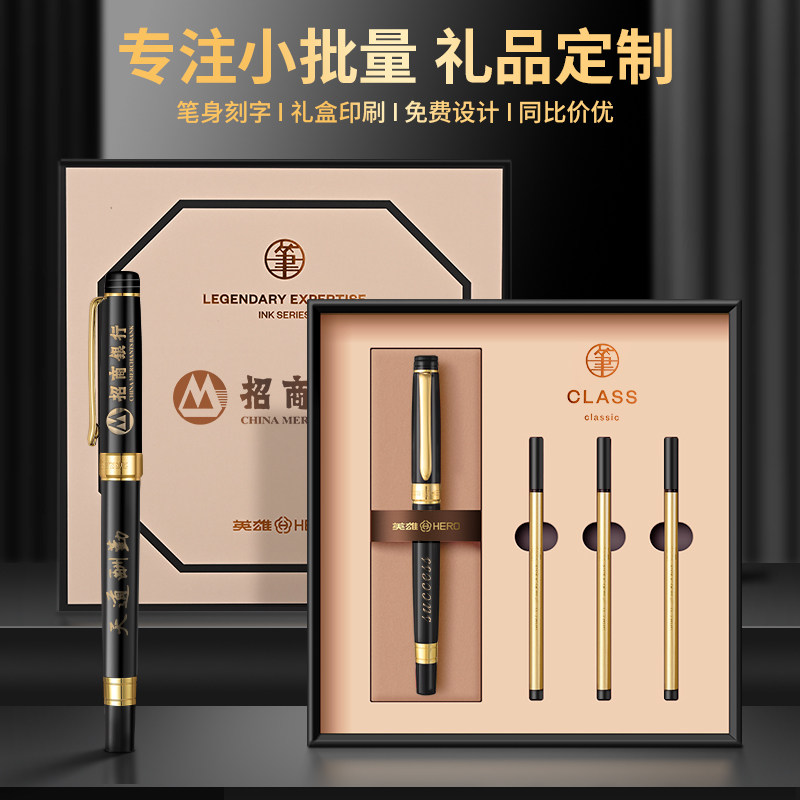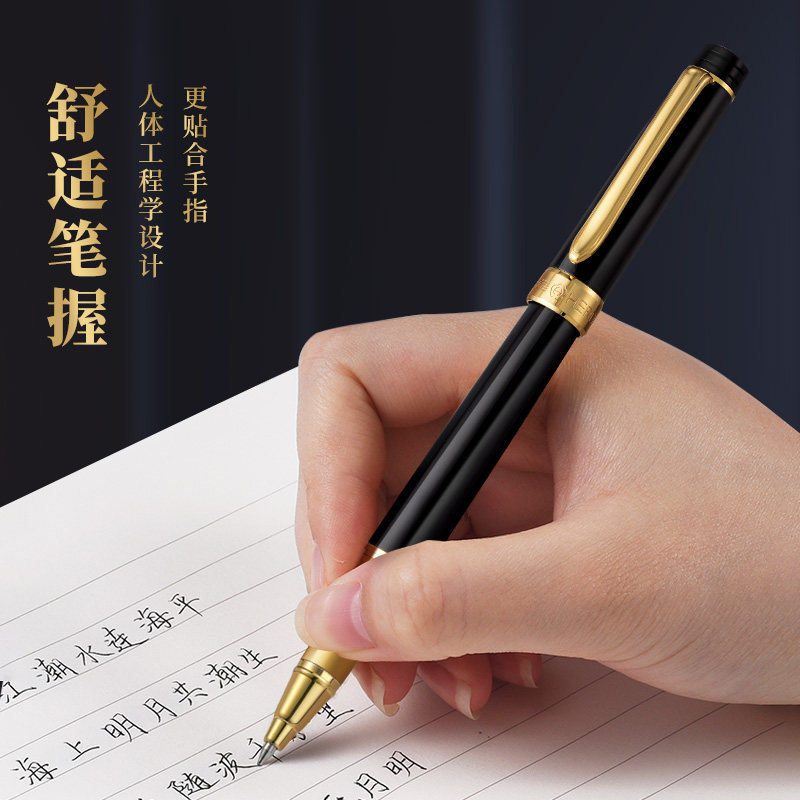 英雄签字笔中性笔男士女士商务高档高颜值金属宝珠笔水笔碳素圆珠笔签名签单笔高端礼物礼品私人定制logo刻字