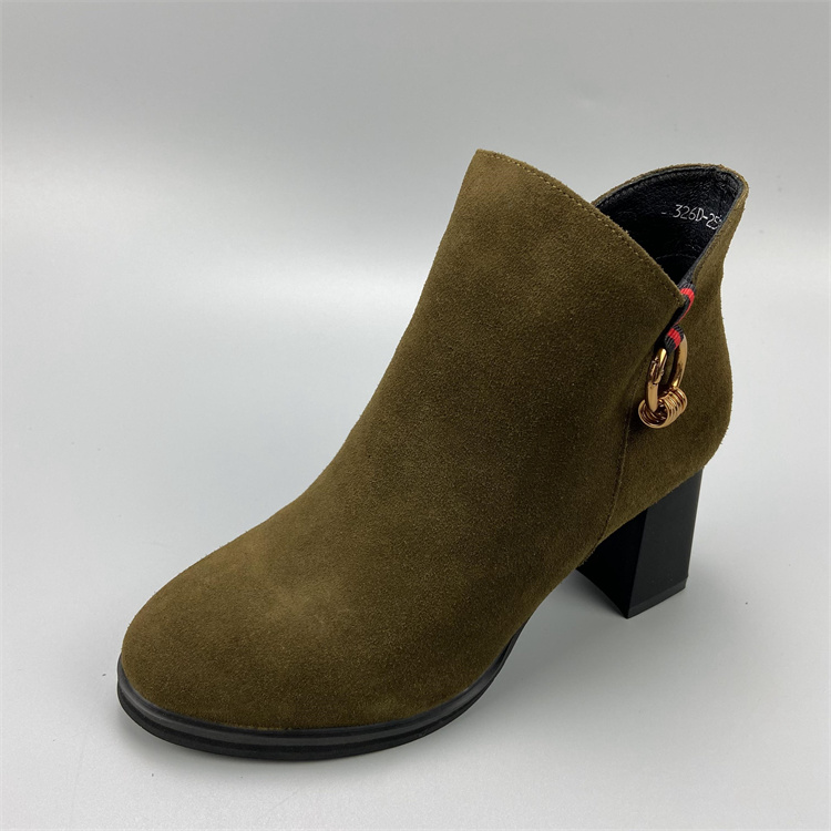 秋冬季高帮牛反绒面圆头女粗跟高跟短靴子时尚加绒女时装靴35 37