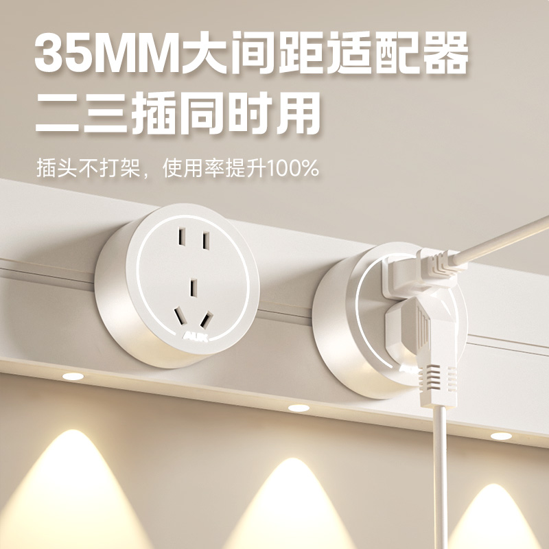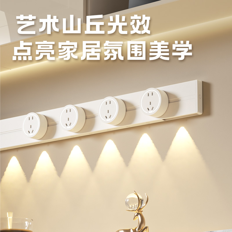 奥克斯轨道插座移动奶油风山丘感应灯家用餐边柜滑轨电力导轨插排