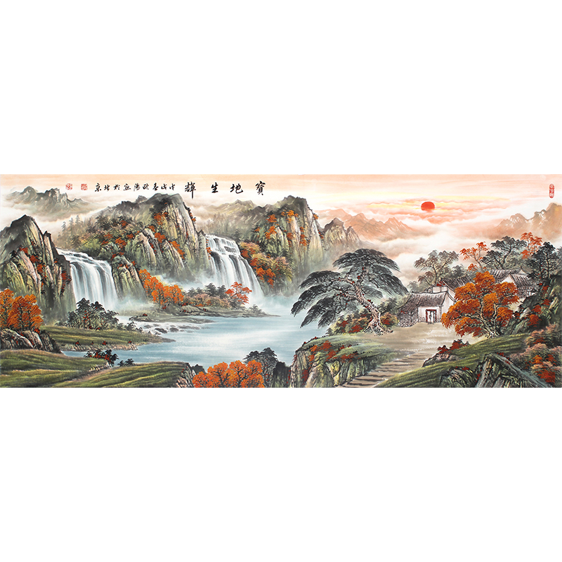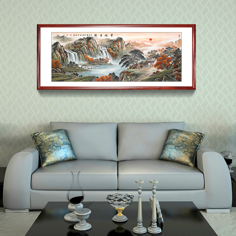 水墨国画招财山水画风水靠山客厅中式装饰画办公室玄关山居图字画