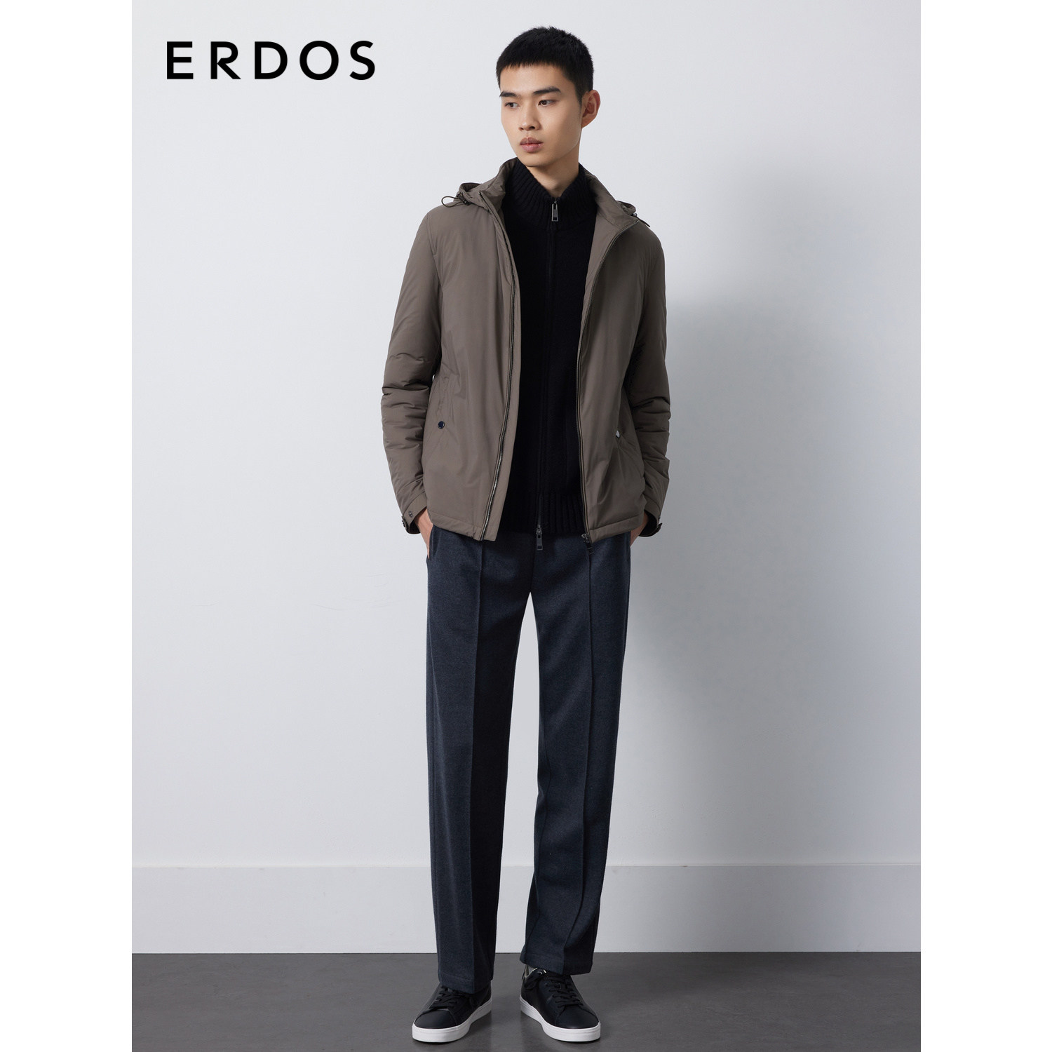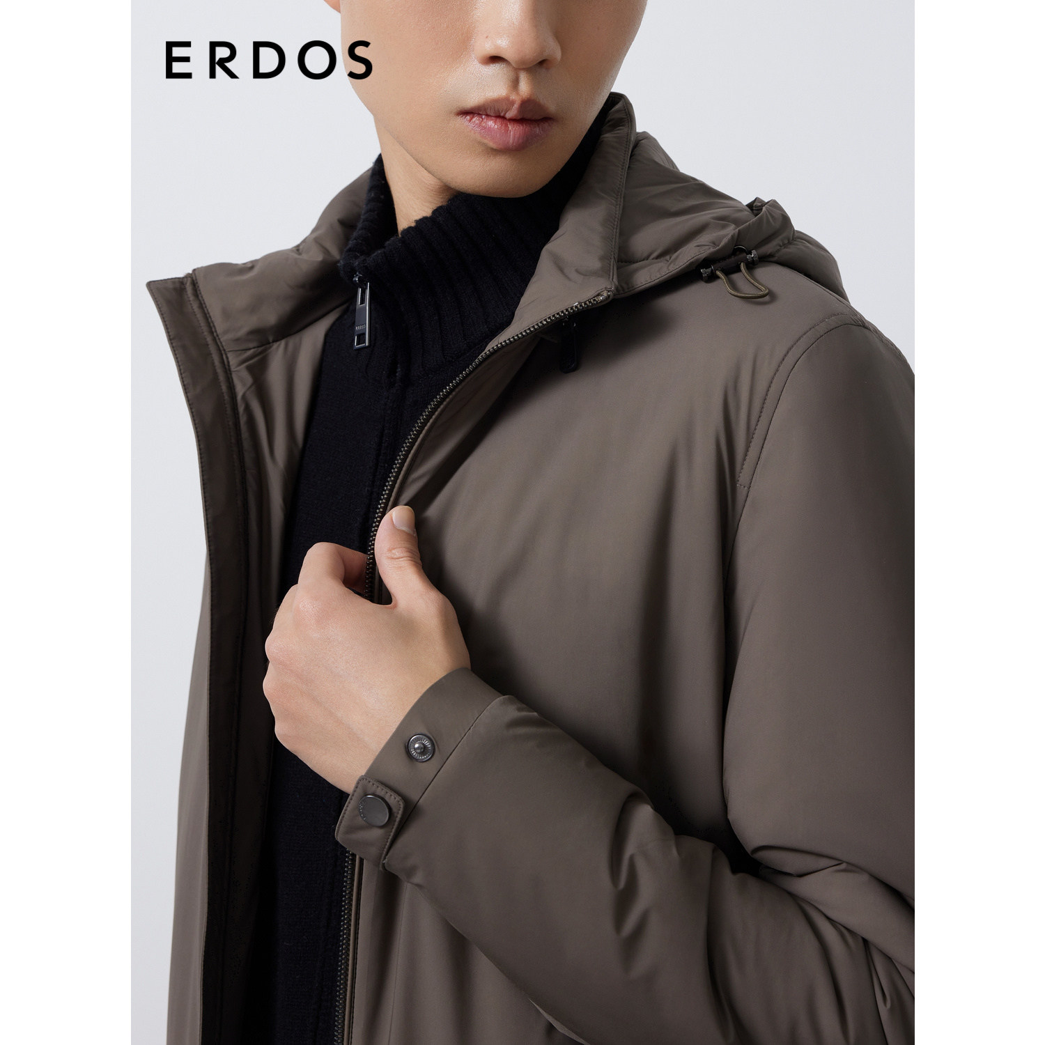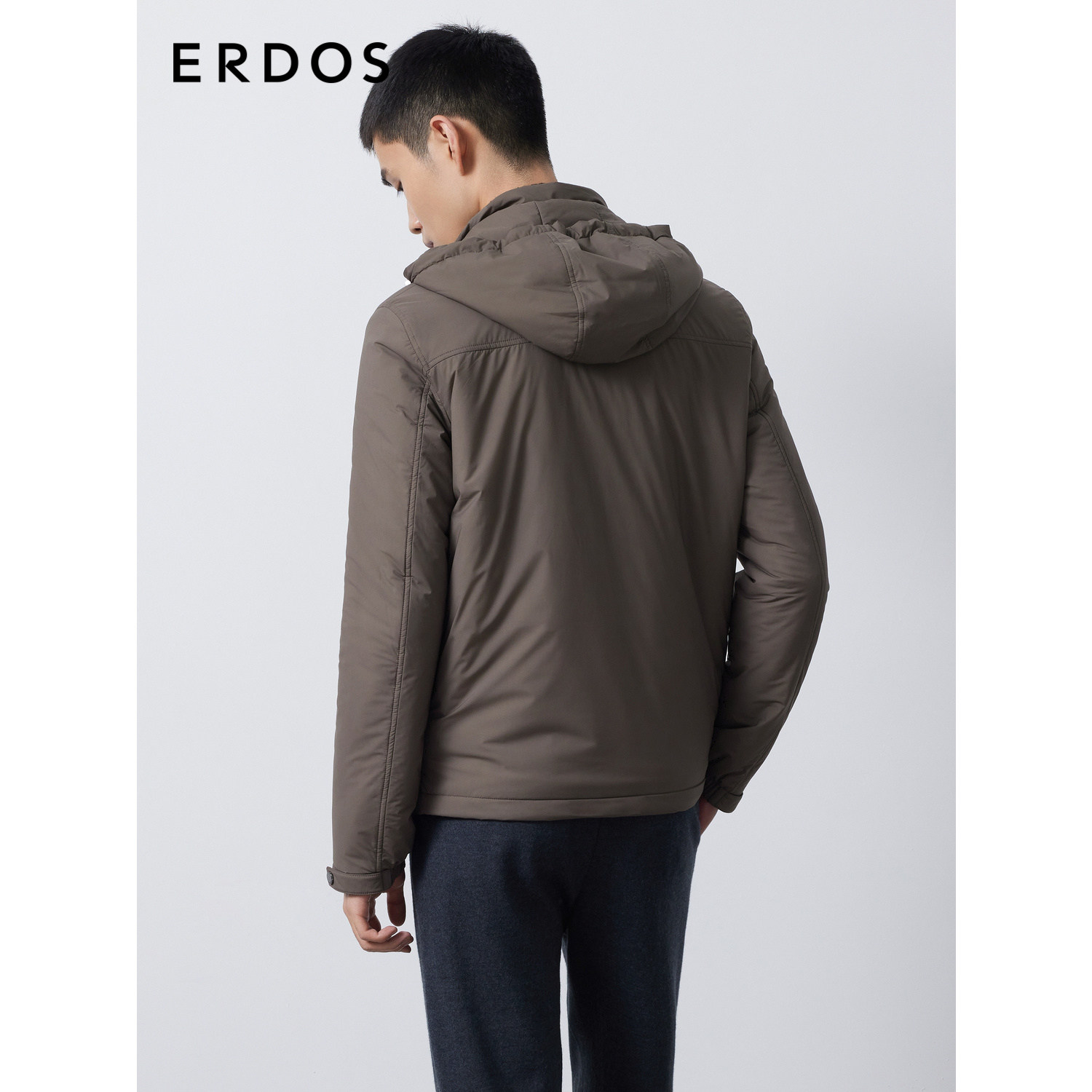 ERDOS 男装棉服秋冬卡其灰连帽短款厚外套商务休闲轻运动
