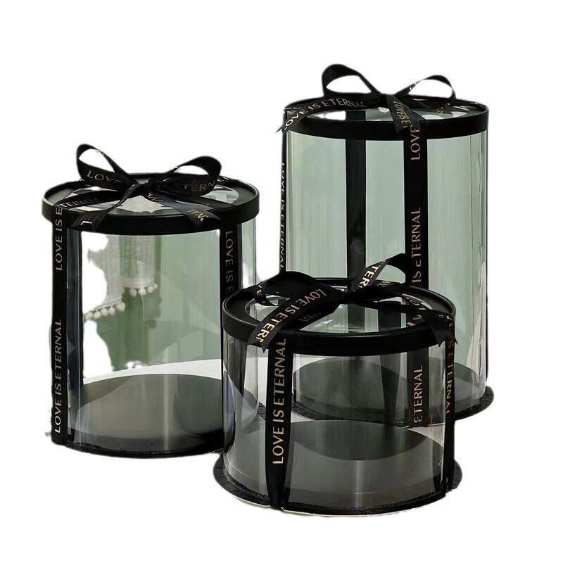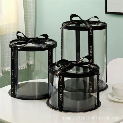 圆形蛋糕盒黑色透明生日烘焙包装6寸8寸10寸双层加高零食鲜花礼盒